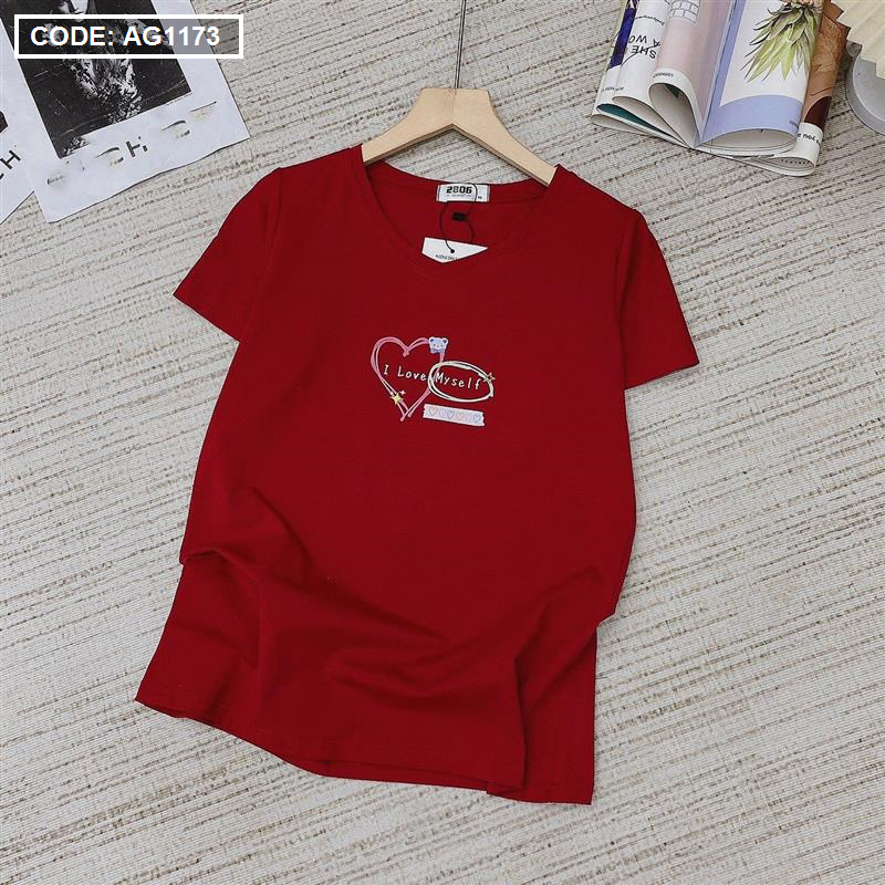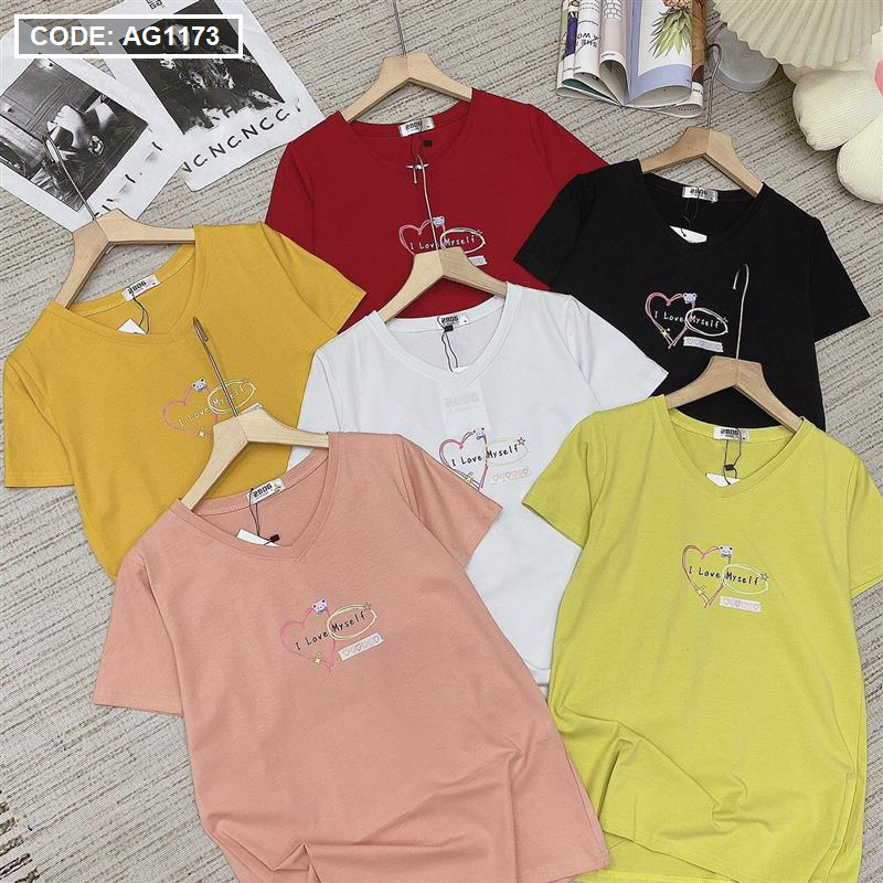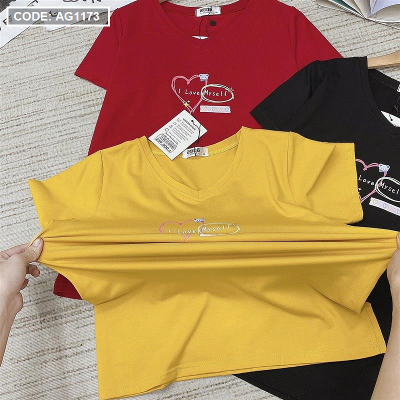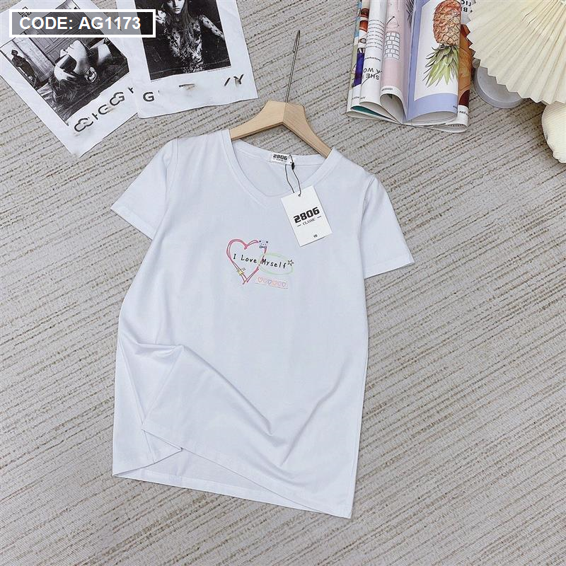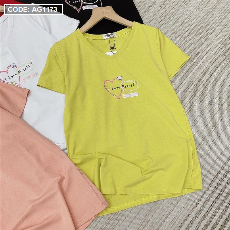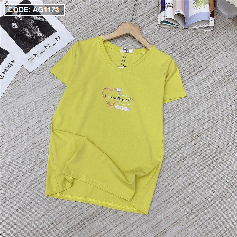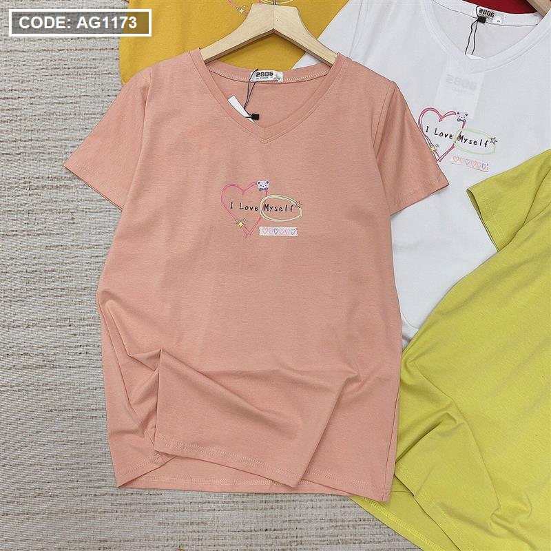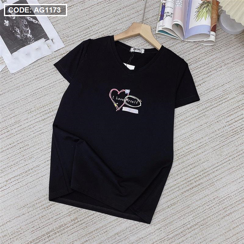 Áo thun thái nữ cổ tim form rộng in chữ i love my self