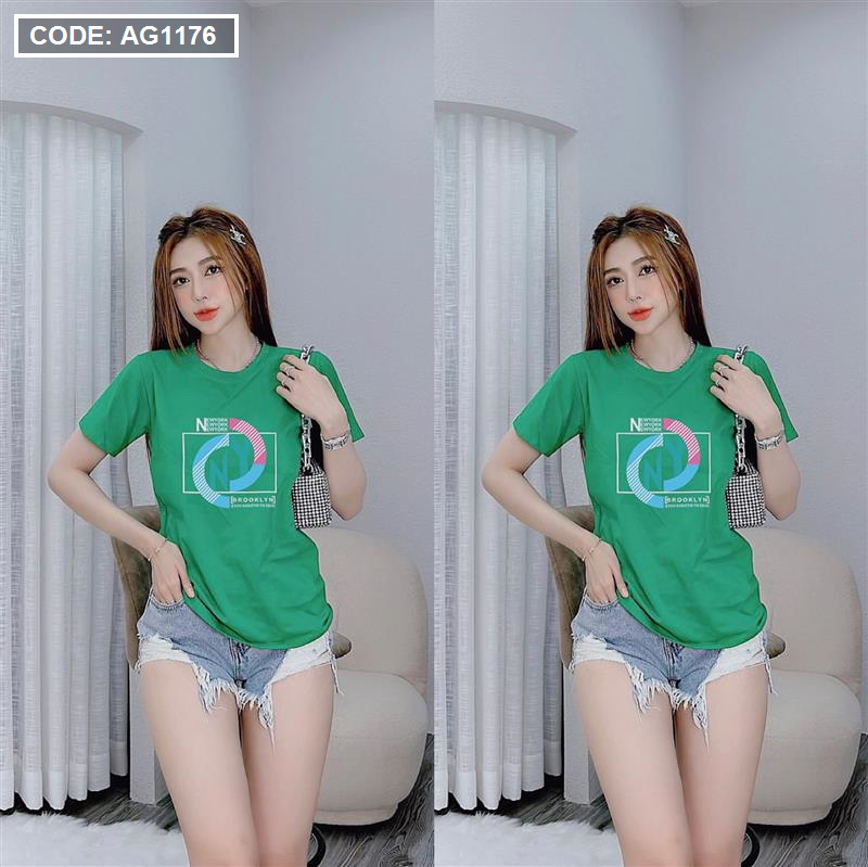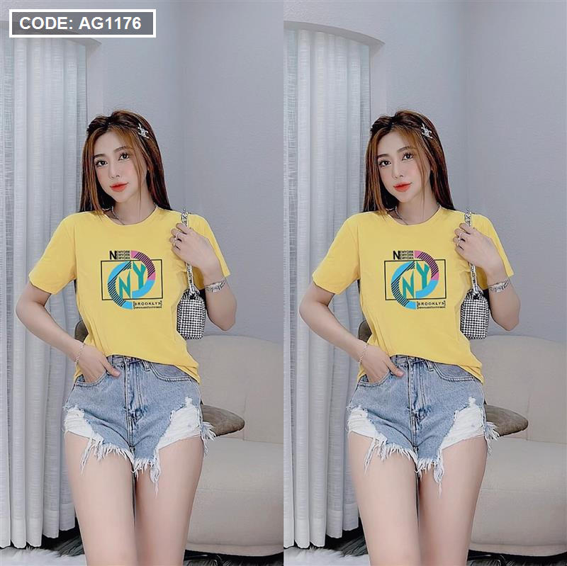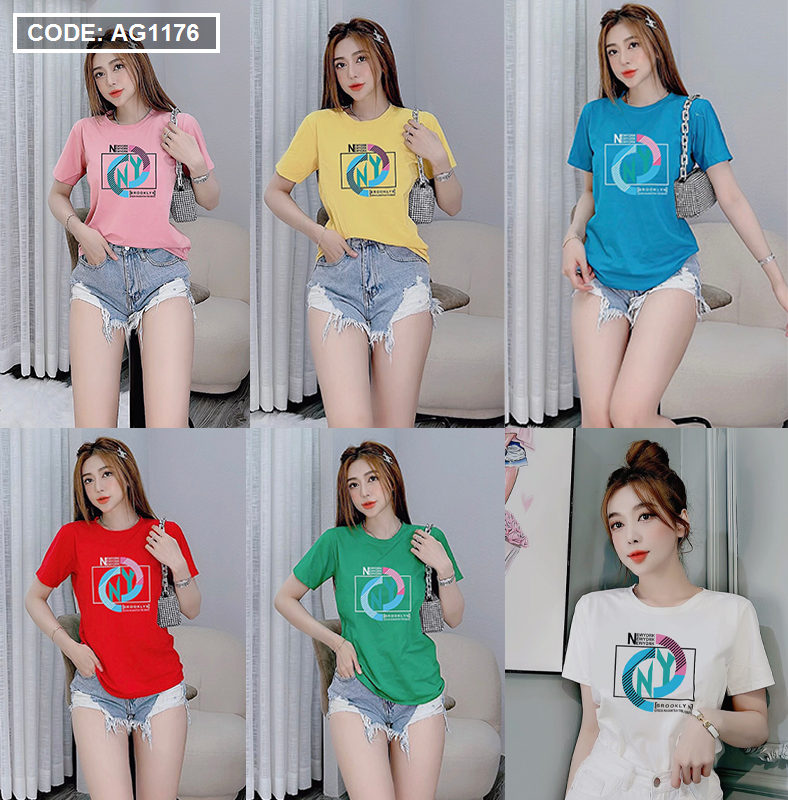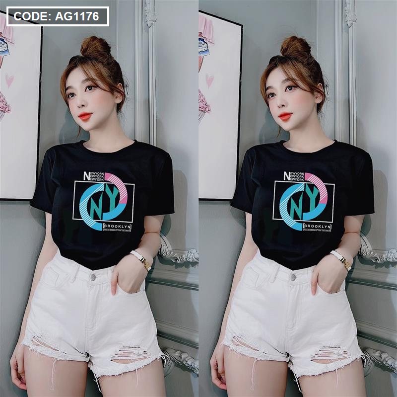 Áo thun thái nữ cồ tròn form suông in chữ màu New York