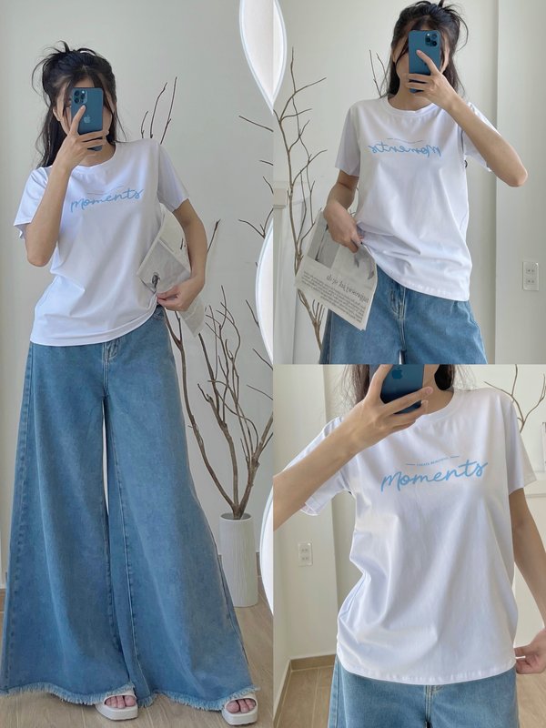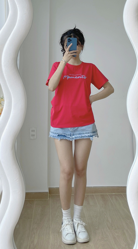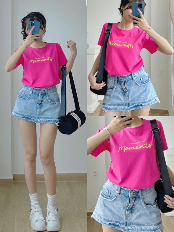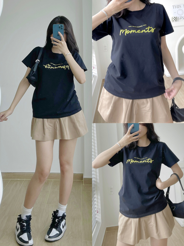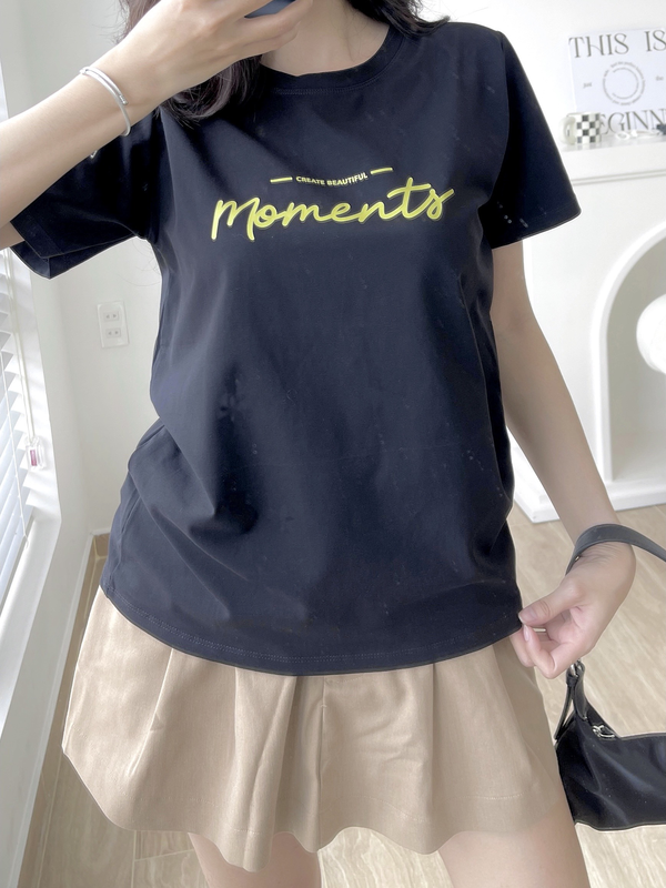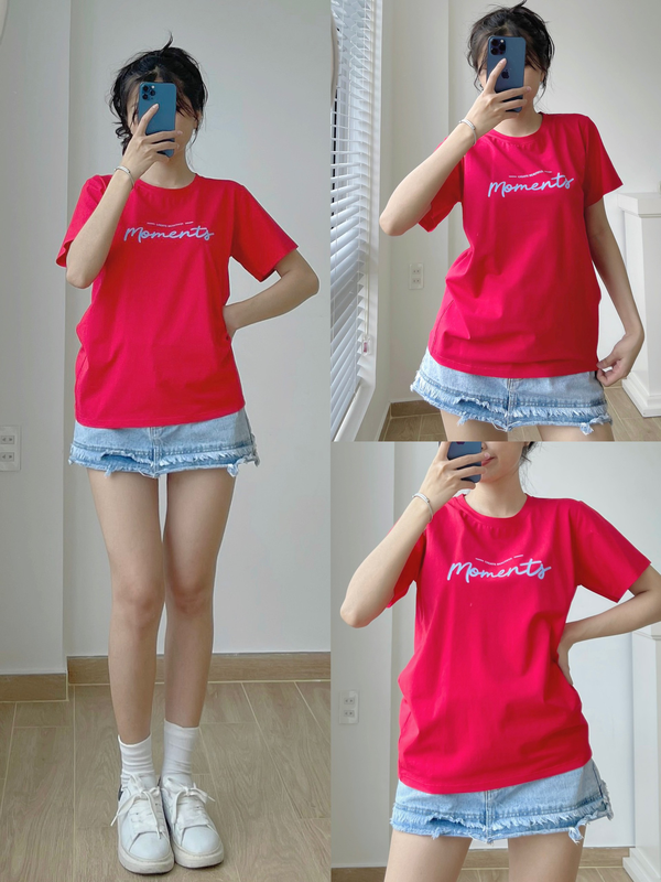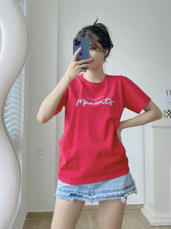 Áo Thun Thái Nữ Cổ Tròn Form suông Nhịp Trái Tim Chữ Moment