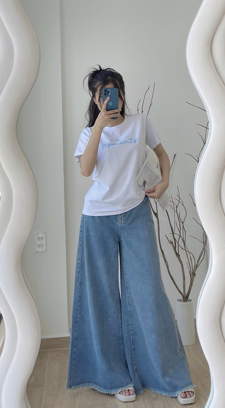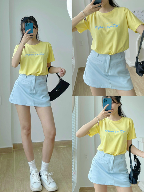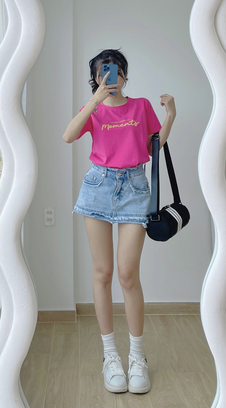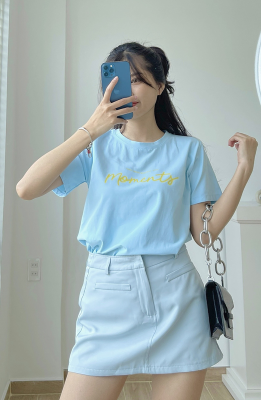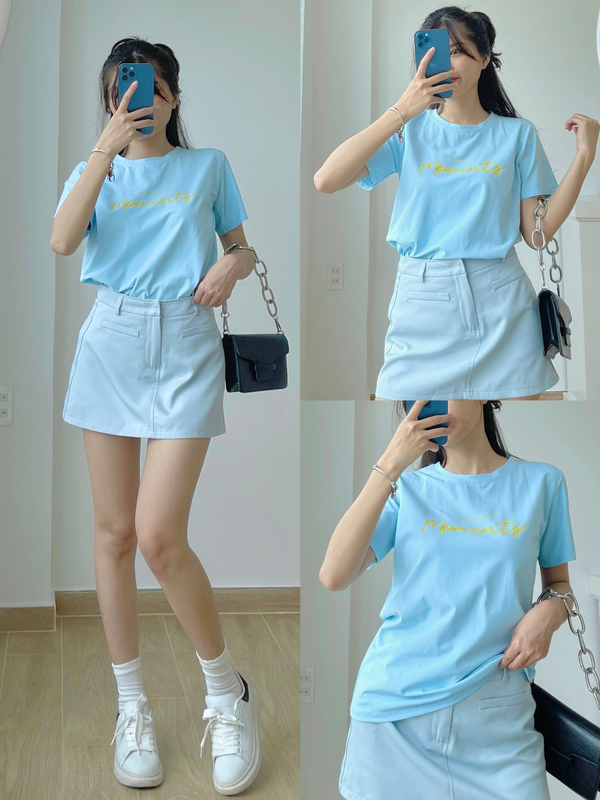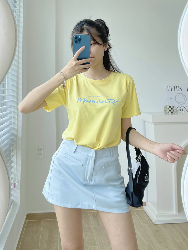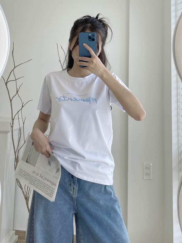 Áo Thun Thái Nữ Cổ Tròn Form suông Nhịp Trái Tim Chữ Moment