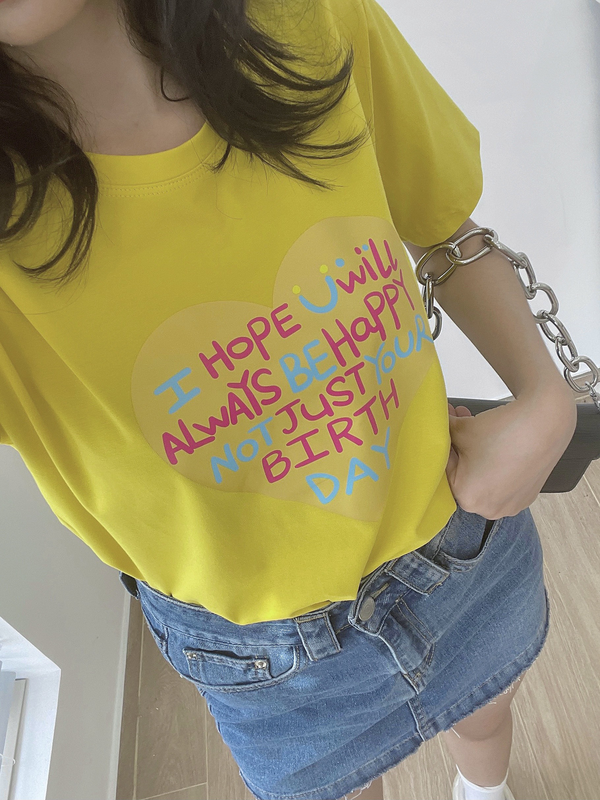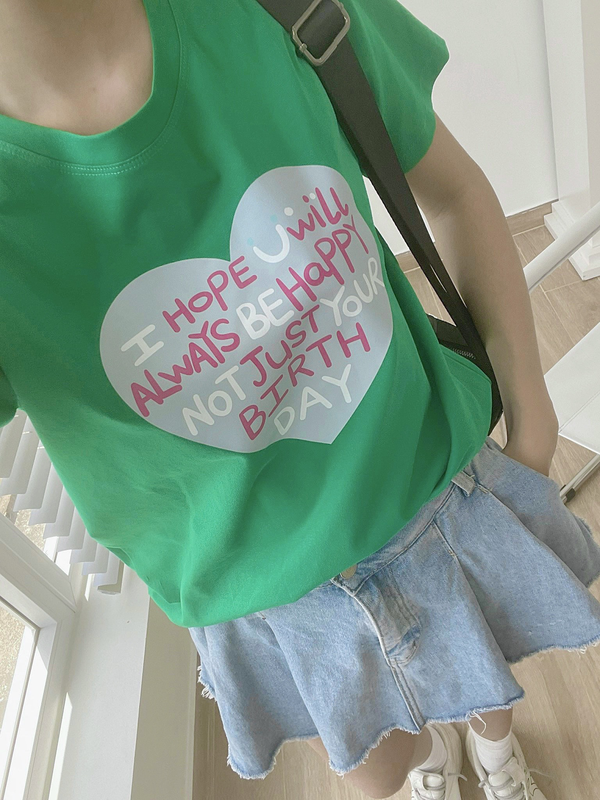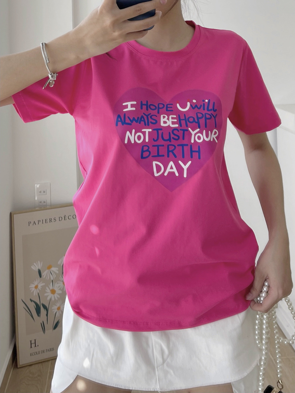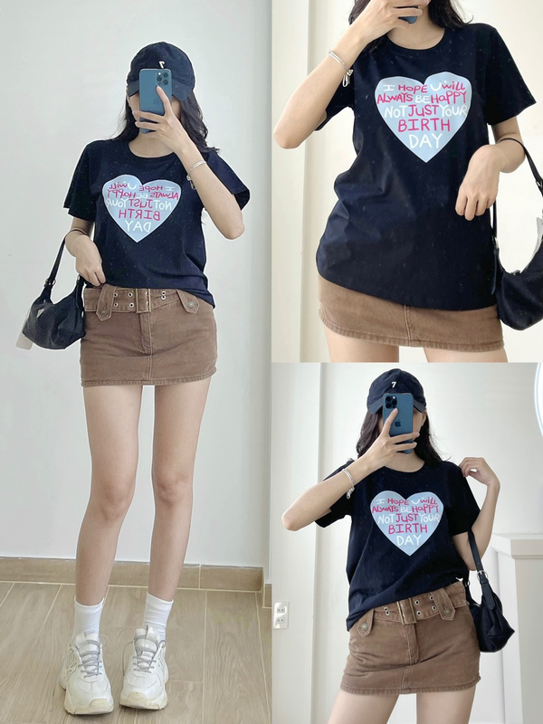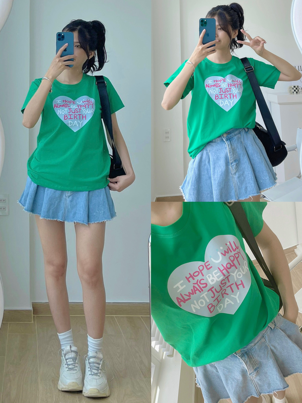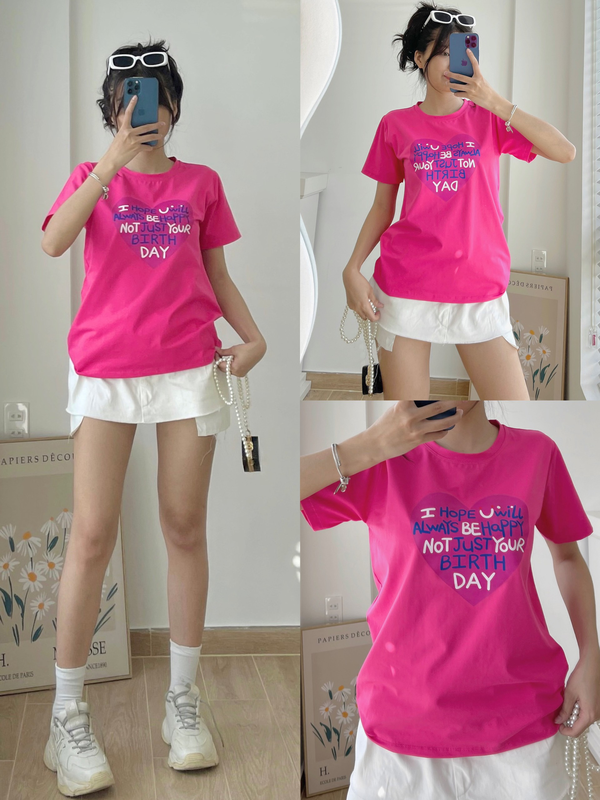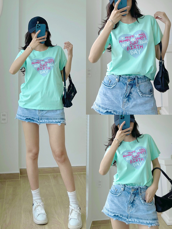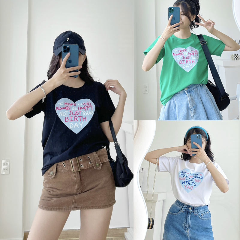 Áo Thun Thái Nữ Cổ Tròn Form suông Trái Tim Chữ Nhiều Màu