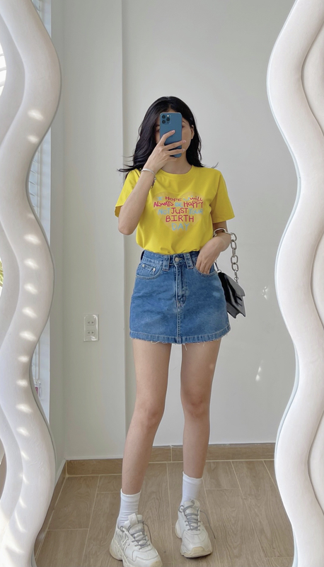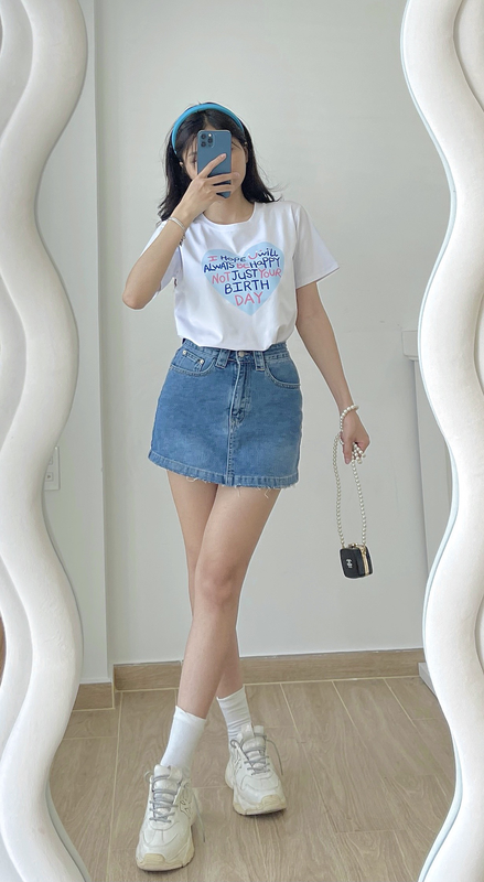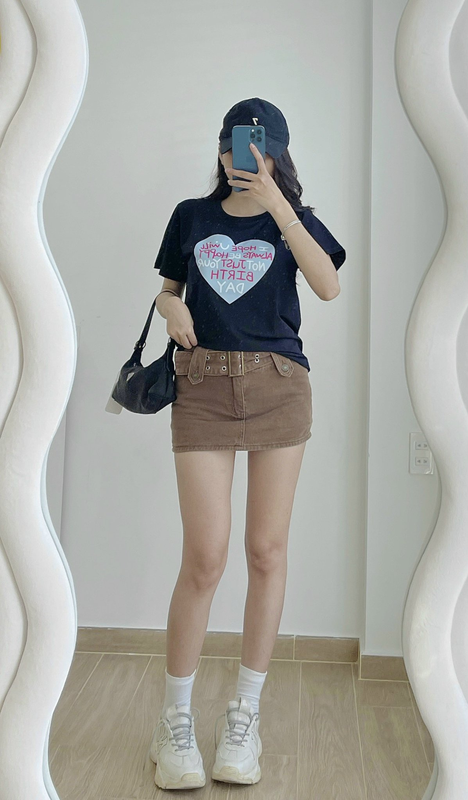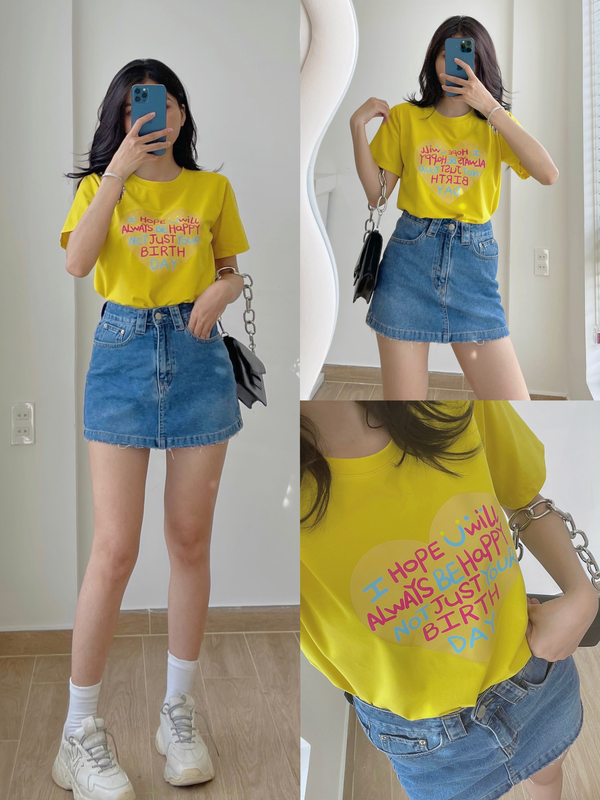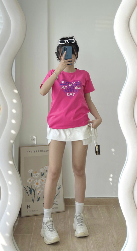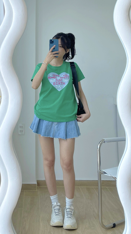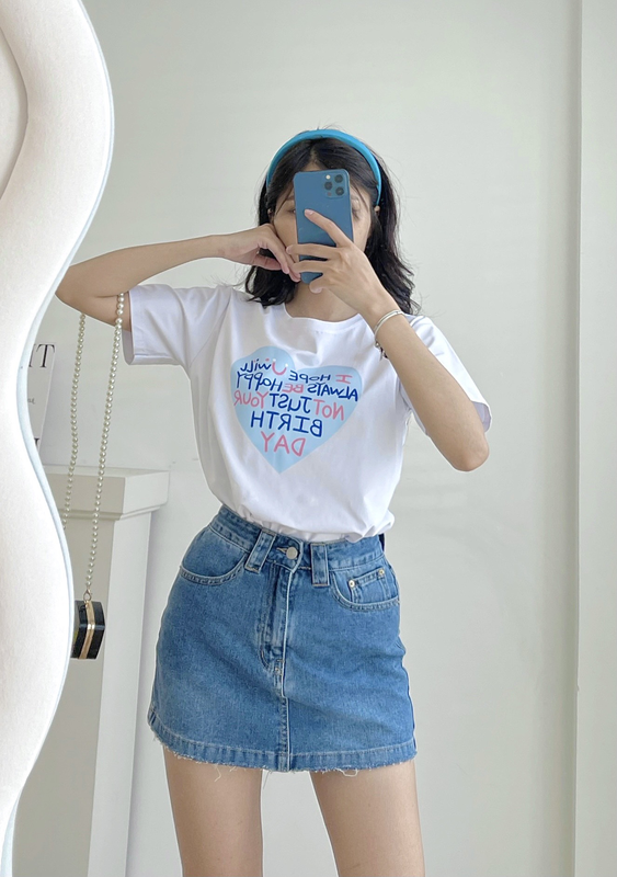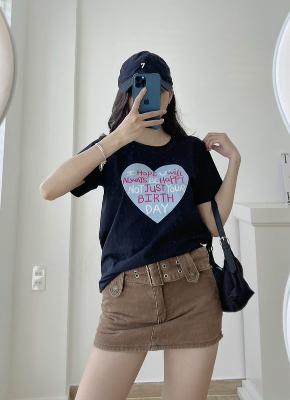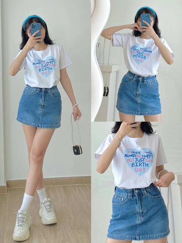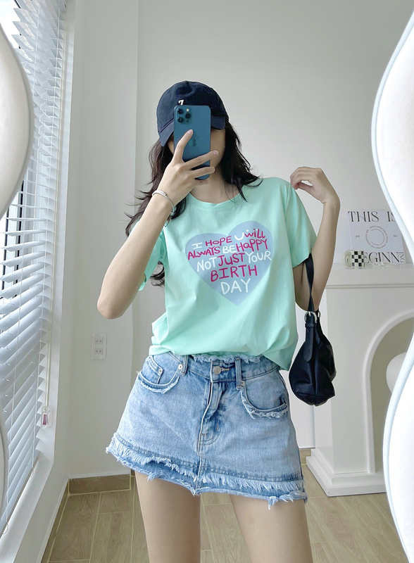 Áo Thun Thái Nữ Cổ Tròn Form suông Trái Tim Chữ Nhiều Màu