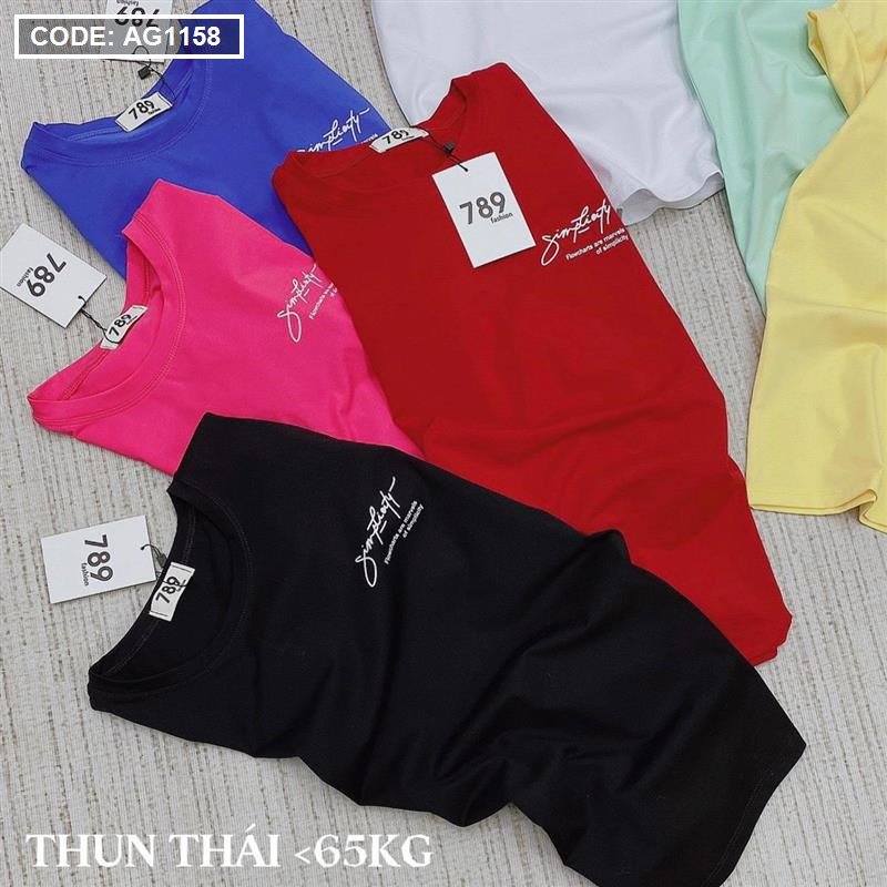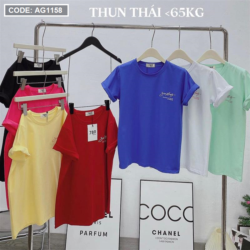 Áo thun thái nữ cổ tròn in chữ kiểu form rộng giấu quần