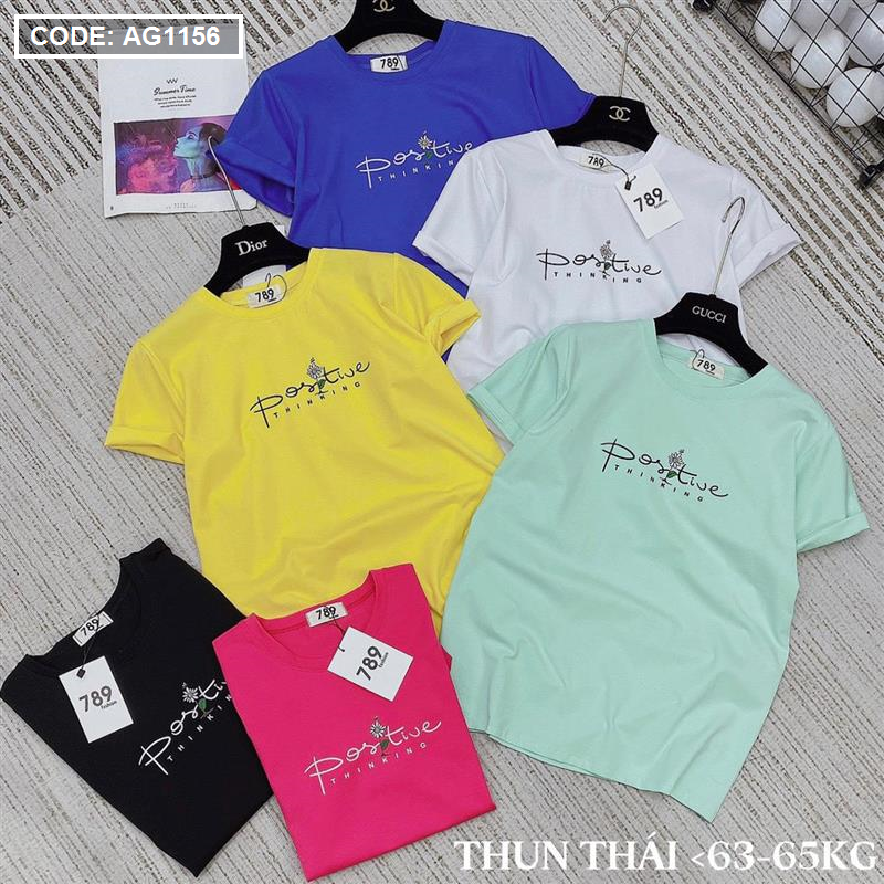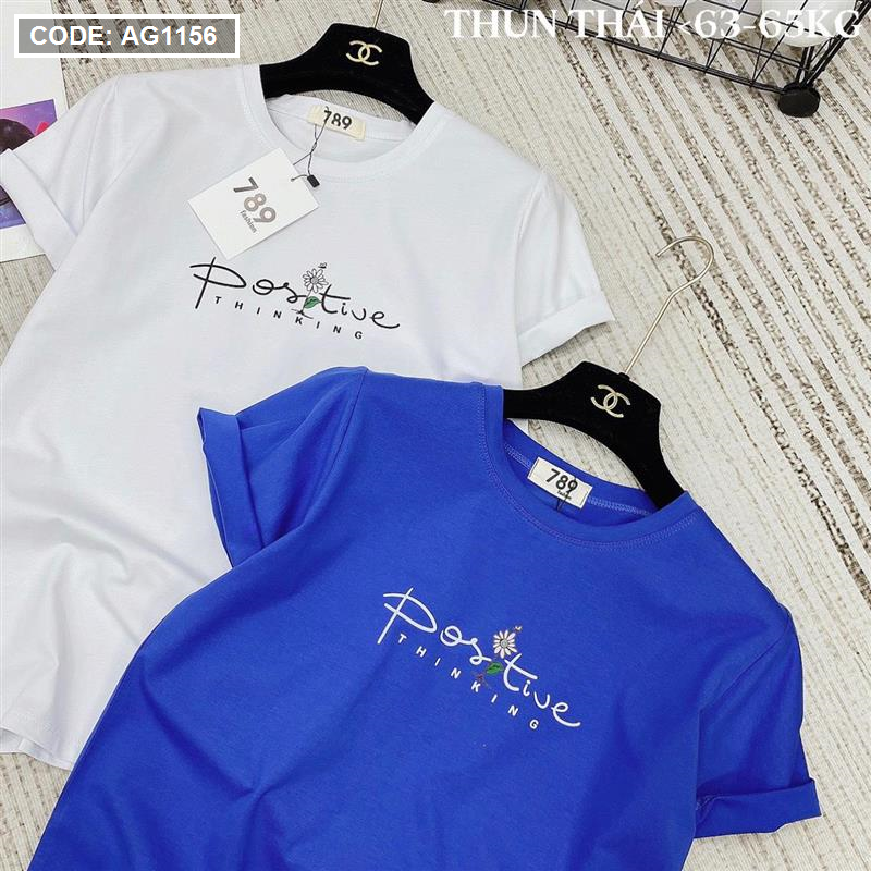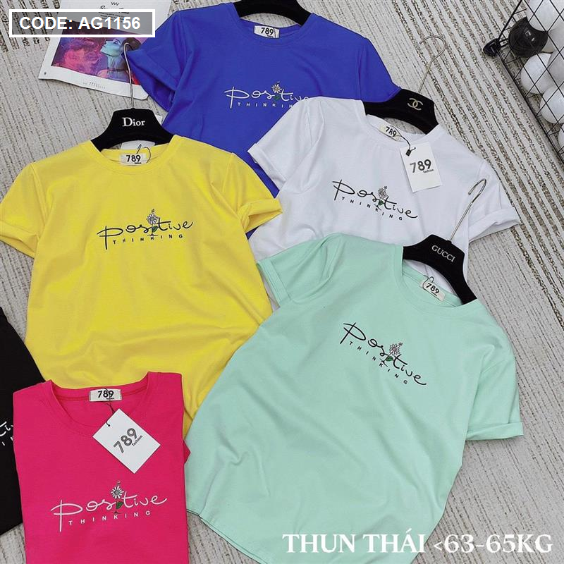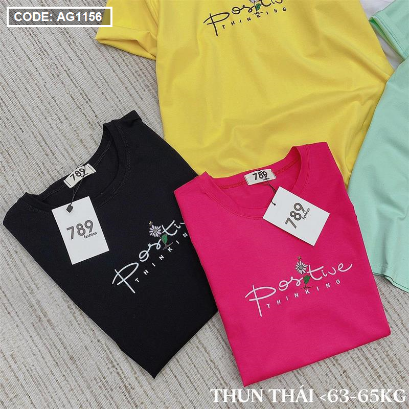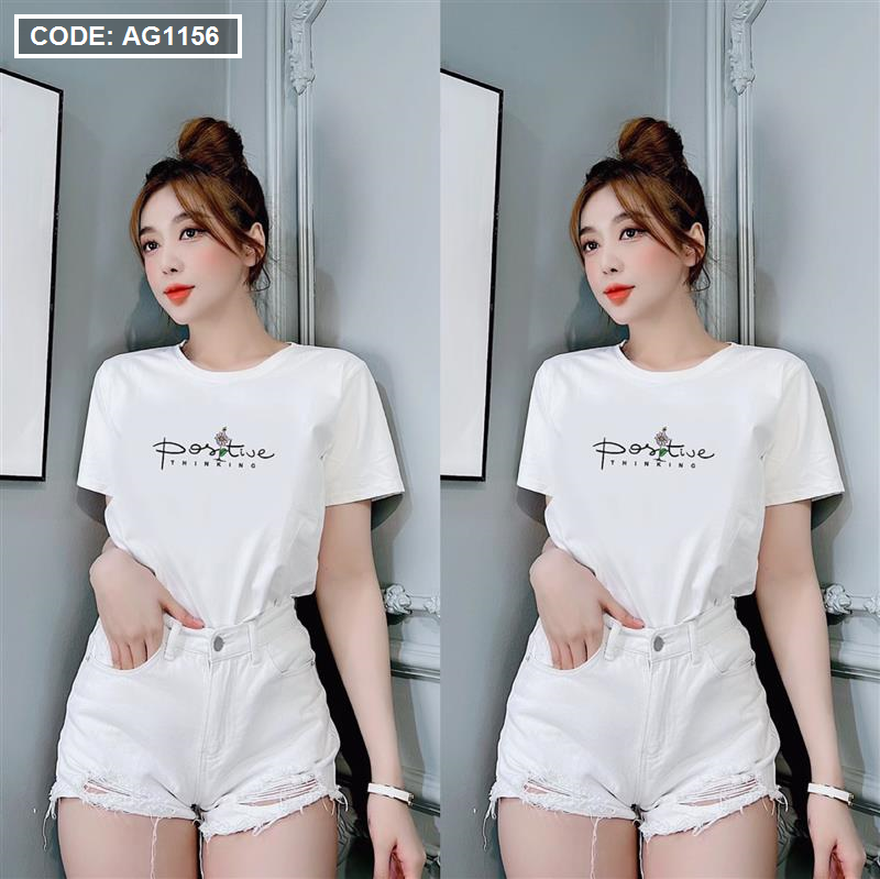 Áo thun thái nữ cổ tròn in chữ postive form suông vừa