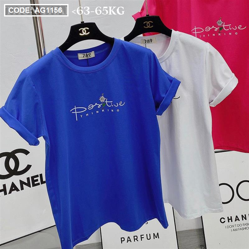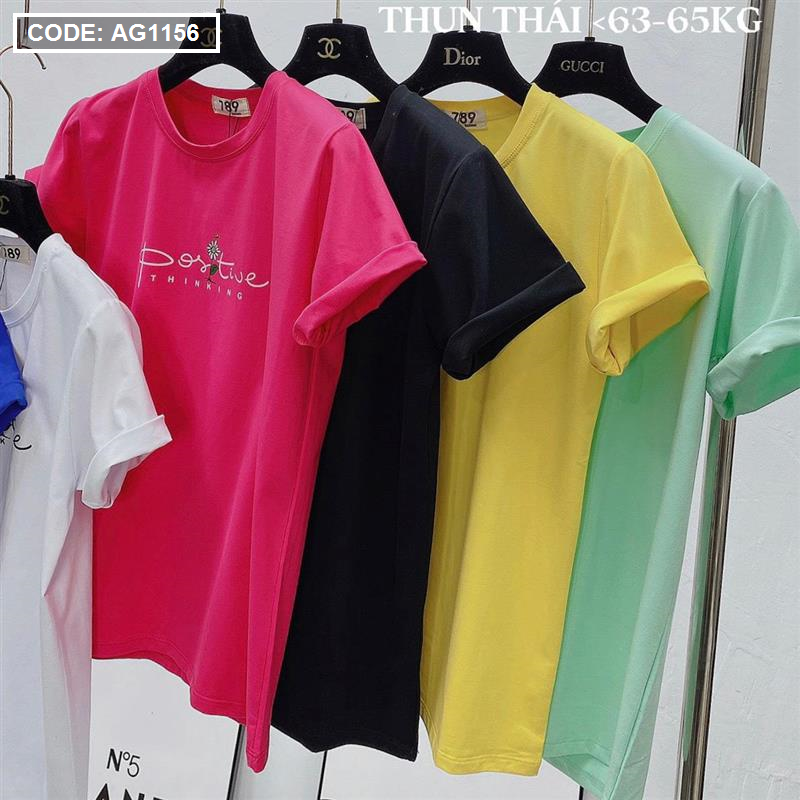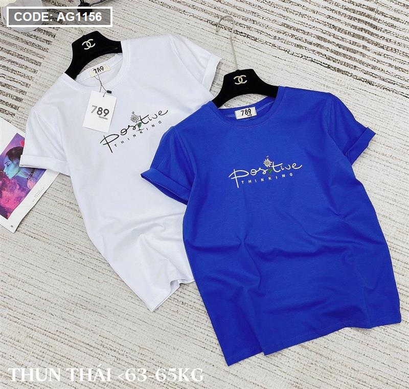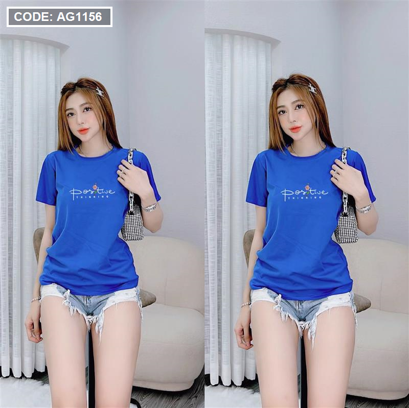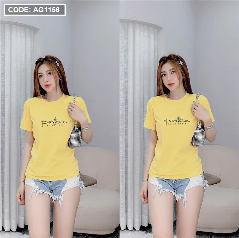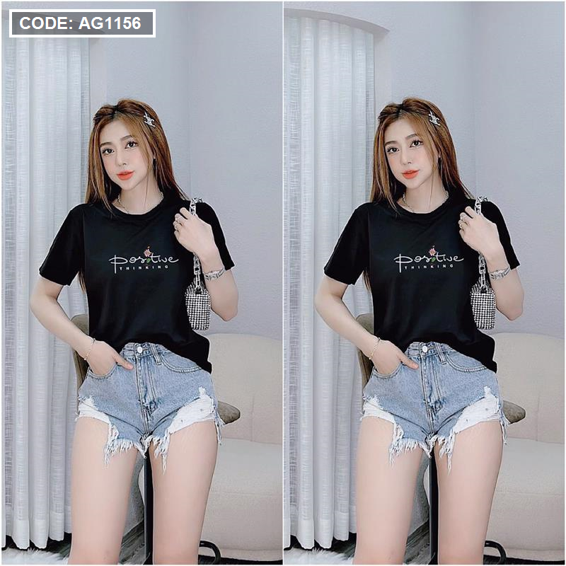 Áo thun thái nữ cổ tròn in chữ postive form suông vừa