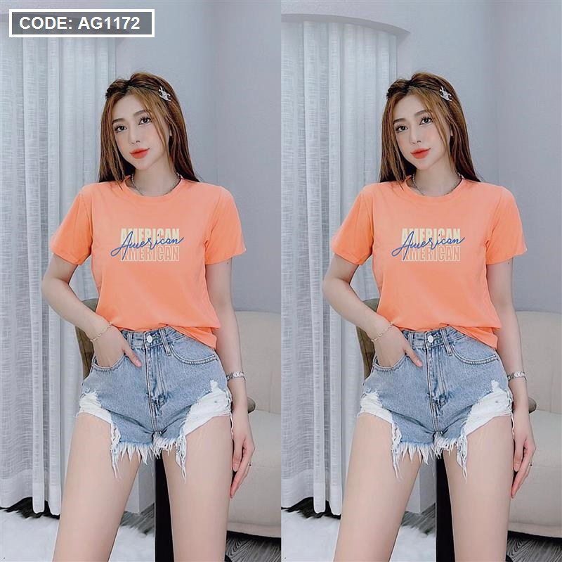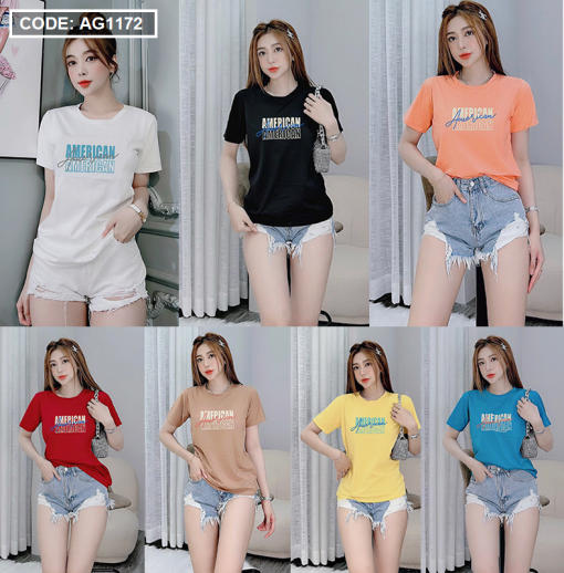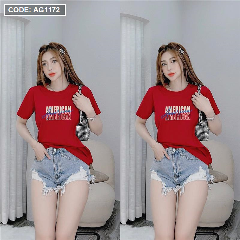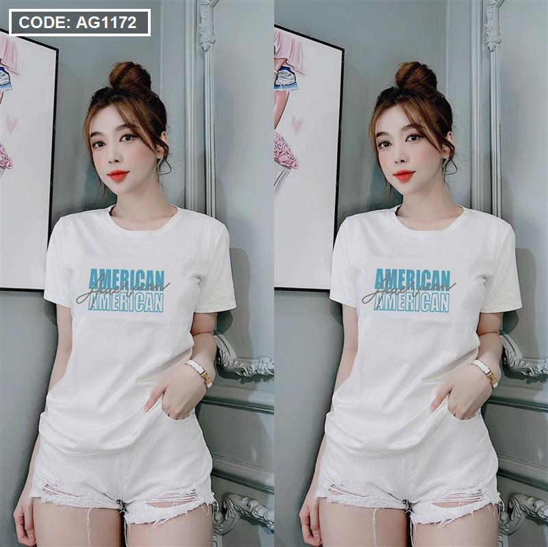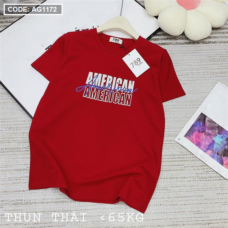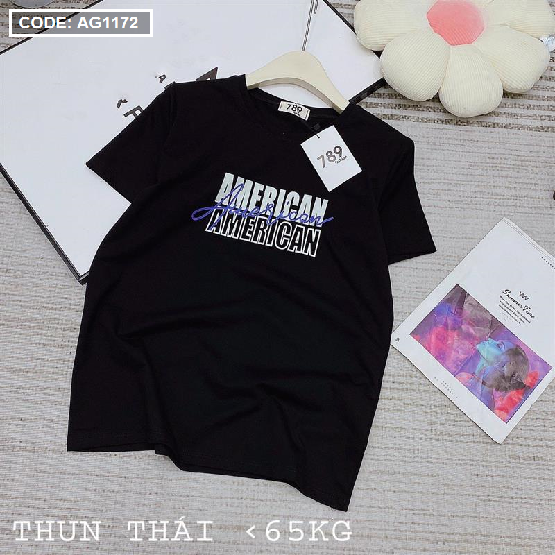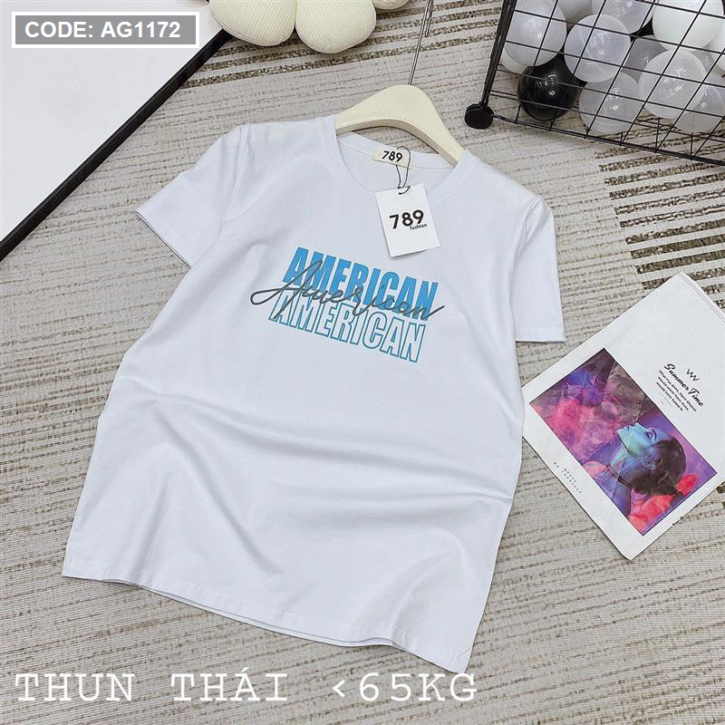 Áo thun thái nữ form rộng in chữ American
