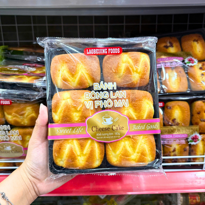 Bánh Bông Lan Tươi Laobeijing Foods Vị Phô Mai Khay 6 Cái 183g