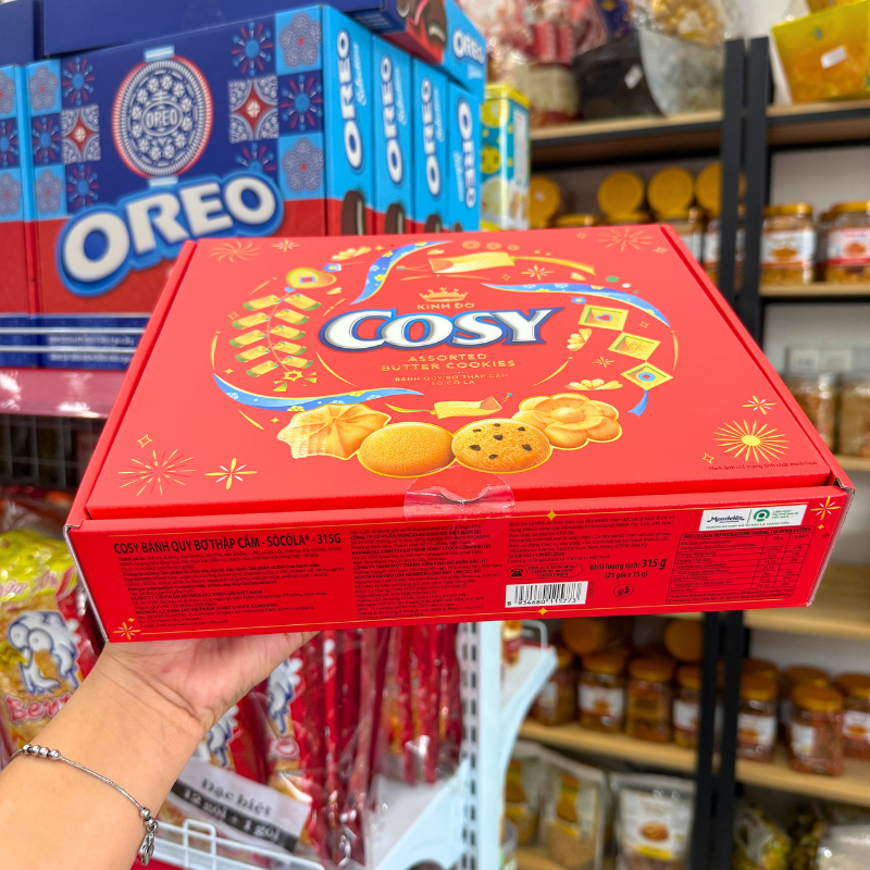 Bánh Cosy Kinh Đô – Bánh Quy Bơ Thập Cẩm Socola 315g (21 Gói x 15g) – (Kèm Túi)