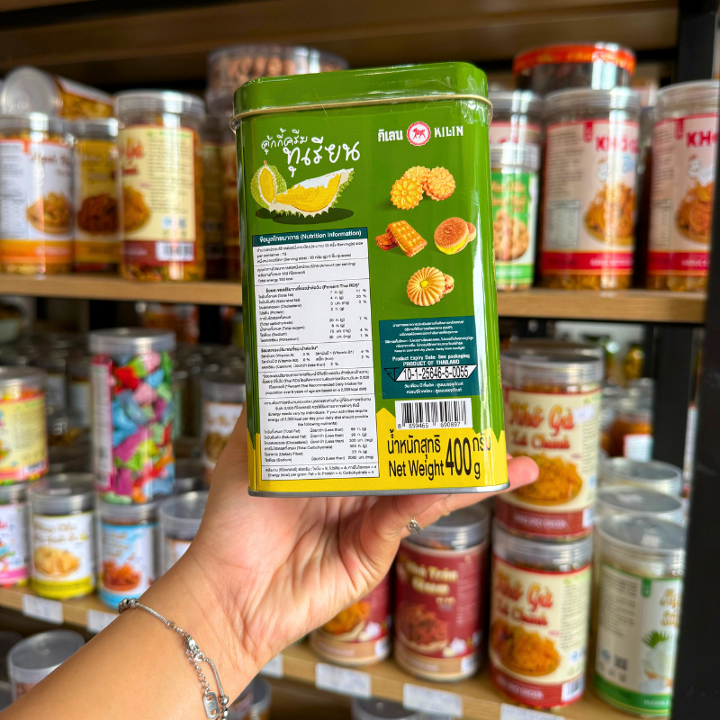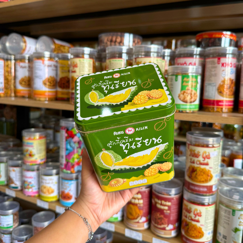 Bánh Quy Nhân Sầu Riêng Hộp Thiếc KILIN Thái Lan 400g – Hộp Xanh Lá