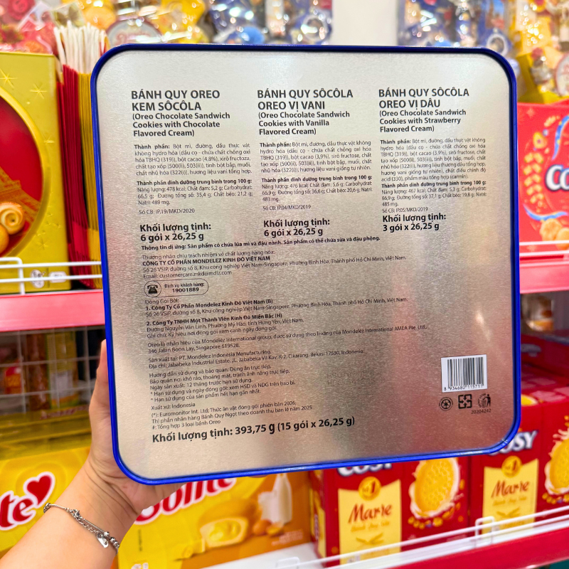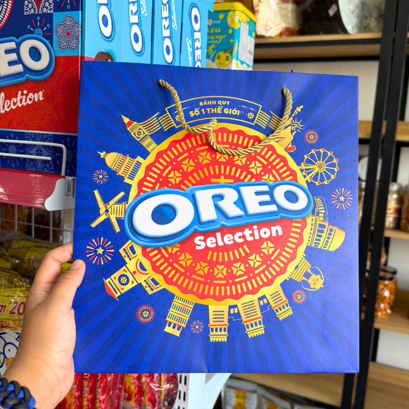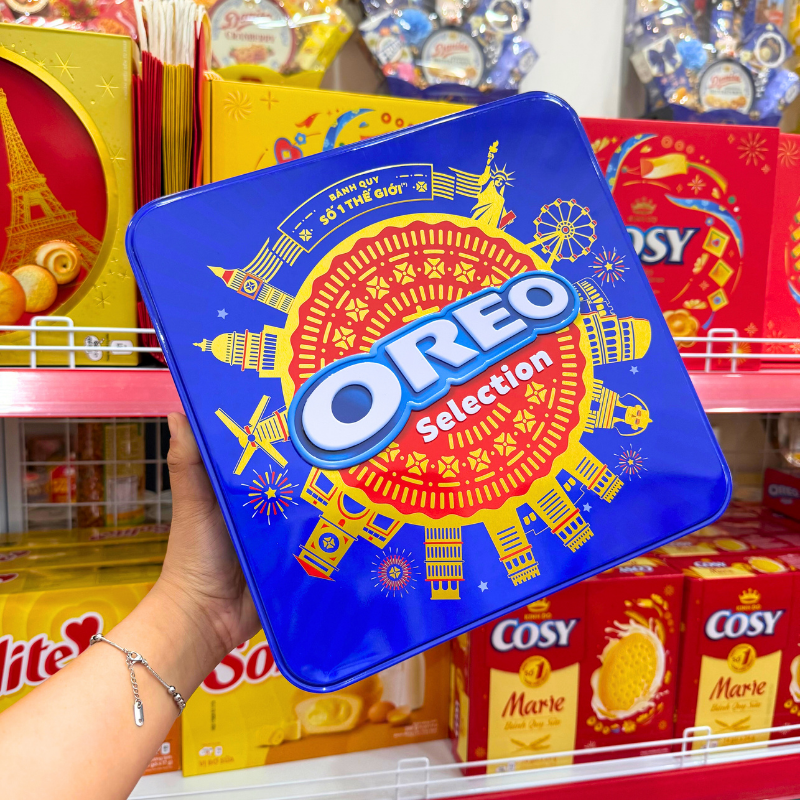 Bánh Quy Oreo (Vị Kem Socola, Vani, Dâu) – Bánh Quy Sữa Oreo – Bánh Kinh Đô Oreo Hộp Thiếc 393,75g (15 Gói x 26,25g) – Kèm Túi