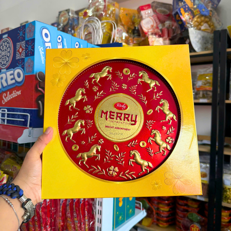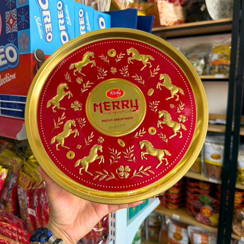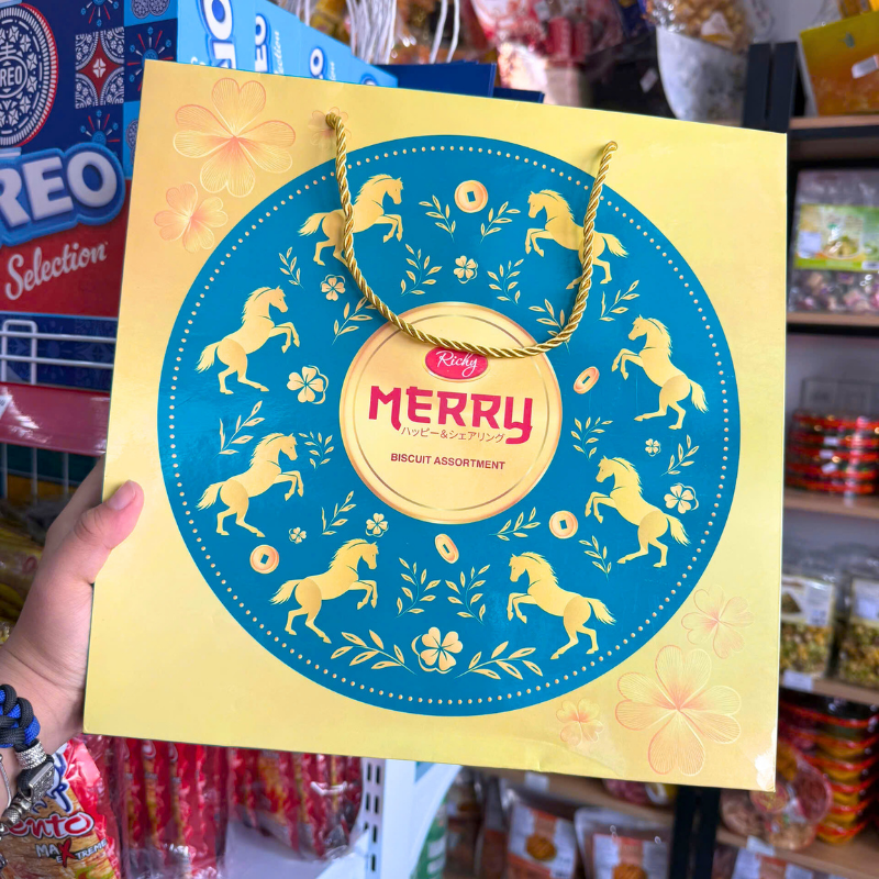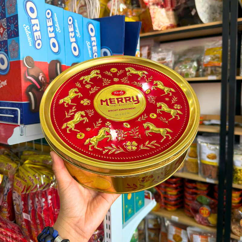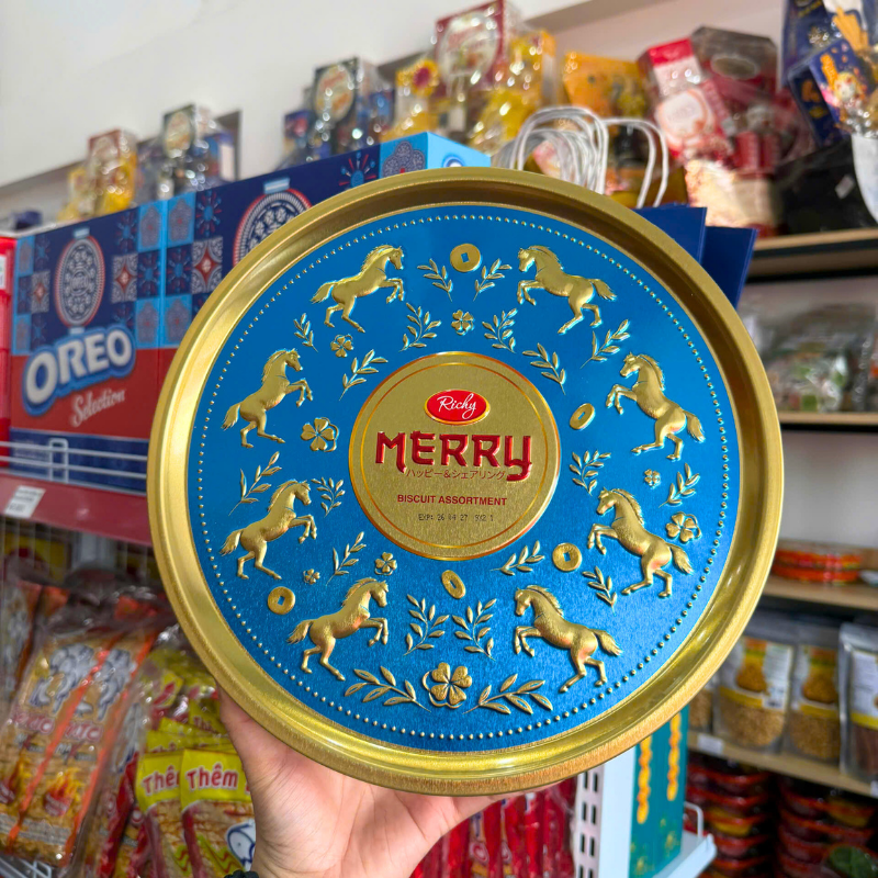 Bánh Quy Thập Cẩm RICHY MERRY Hộp Thiếc 334g (Xanh Dương/Đỏ) – Kèm Túi