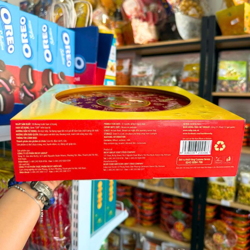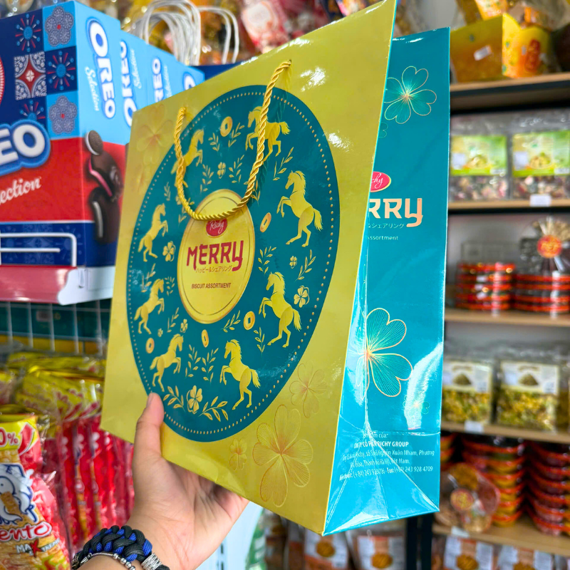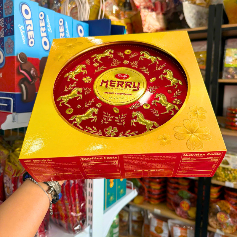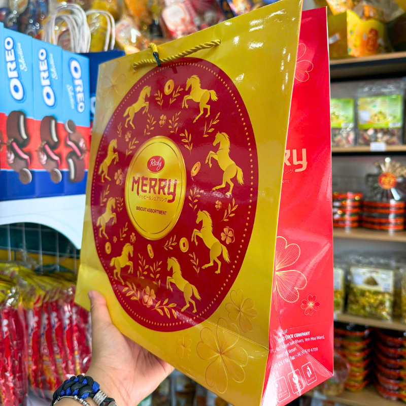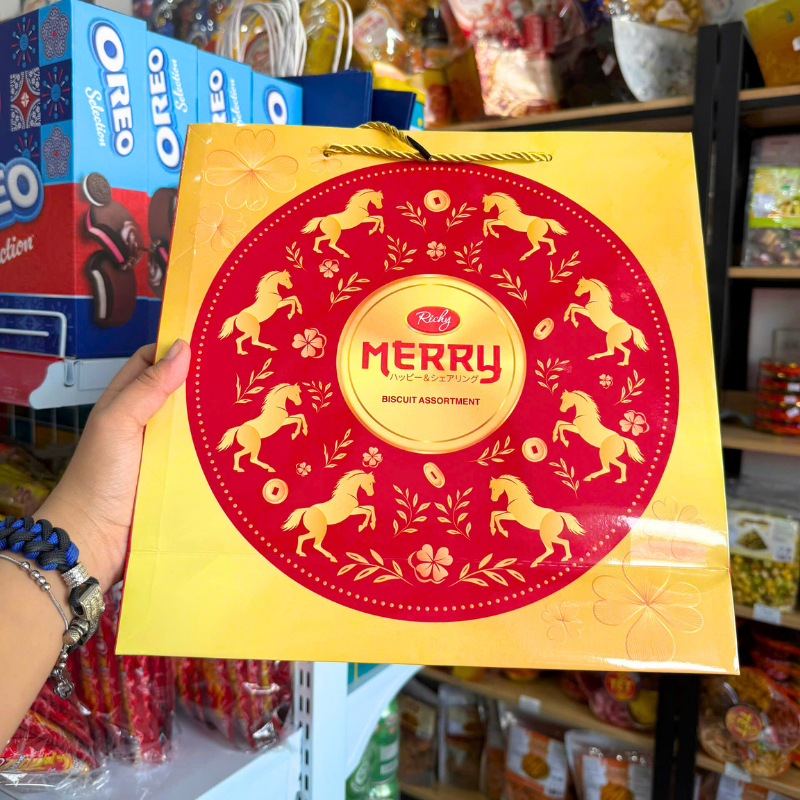 Bánh Quy Thập Cẩm RICHY MERRY Hộp Thiếc 334g (Xanh Dương/Đỏ) – Kèm Túi