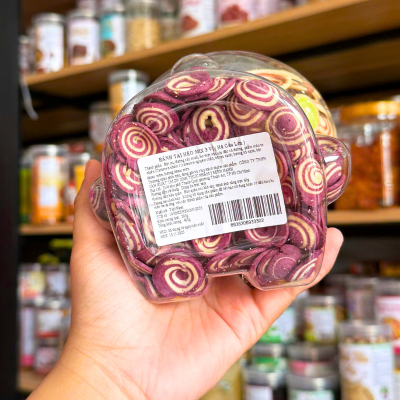 Bánh Tai Heo Mix 3 Vị (Caramel, Khoai Môn, Trà Xanh) 400g Thơm Ngon – Hũ Gấu Lớn