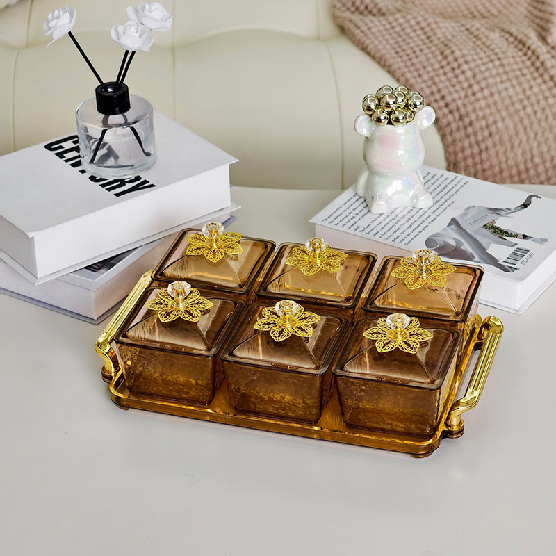 ❌❌ Sang trọng, Khay đựng bánh kẹo nhựa cao cấp, đựng hoa quả mứt tết 6 ngăn có nắp, hộp đựng thực phẩm bánh kẹo Tết sang trọng❌❌