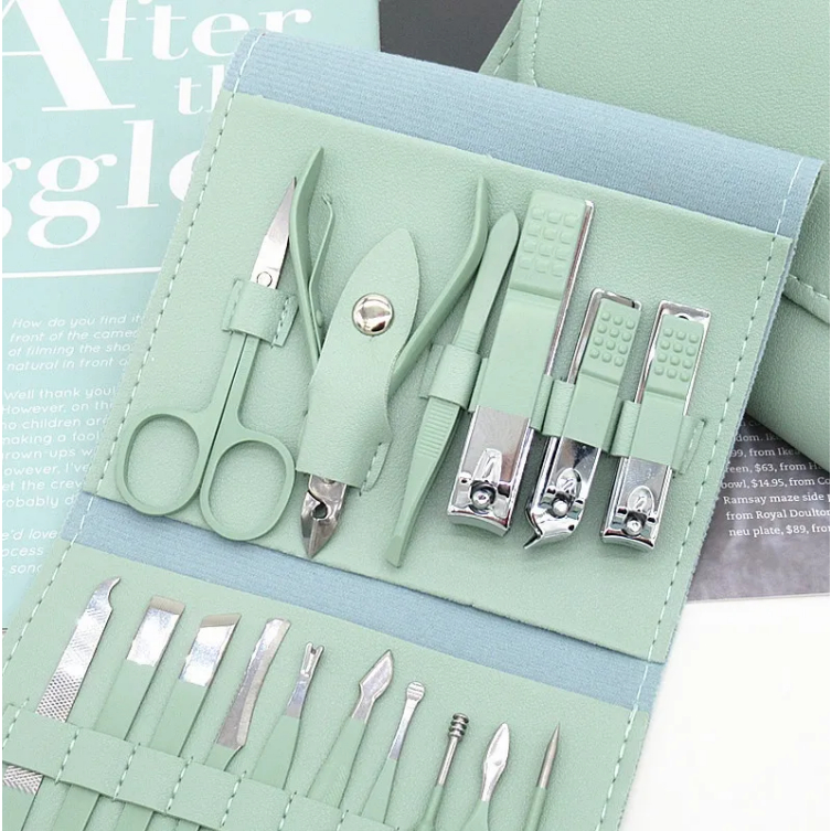 Bộ Cắt Móng Tay 16 Món Bằng Thép Không Gỉ Kèm Bao