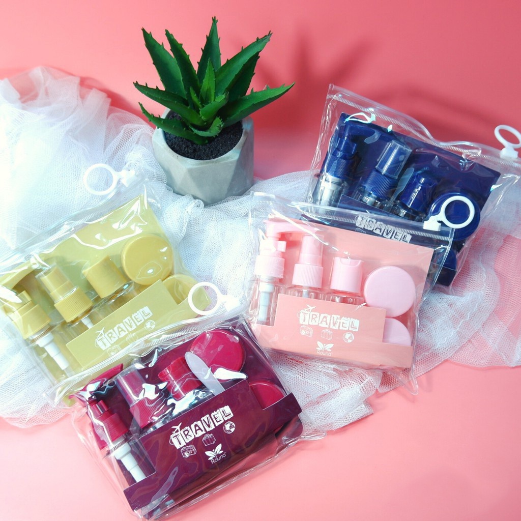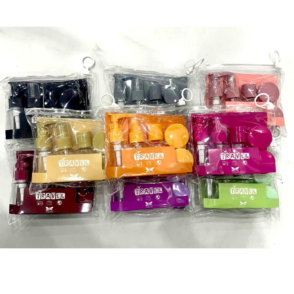 Bộ Chiết Mỹ Phẩm 6 Món Kèm Túi Zip Nhiều Màu 16x13cm
