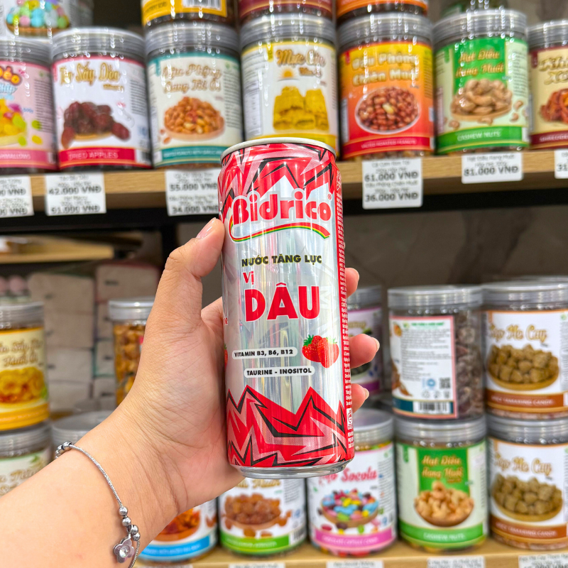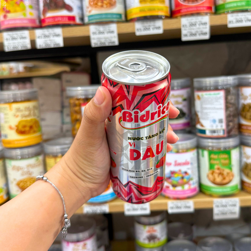 Bỏ sỉ 1 Lon Nước Tăng Lực Bidrico Vị Dâu – Nước Ngọt Bidrico Dâu (325ml/Lon)