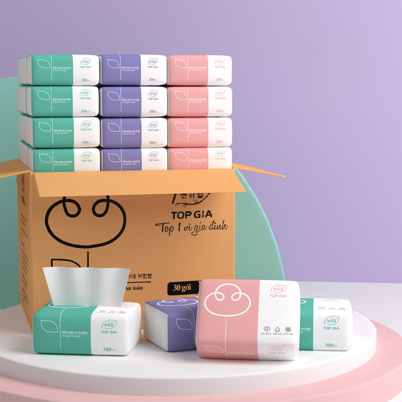 Bỏ sỉ 1 Thùng 30 Gói Khăn Giấy Ăn 3 Màu Top Gia Loại Nhỏ