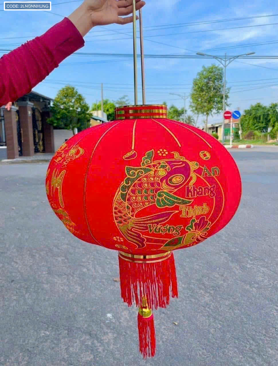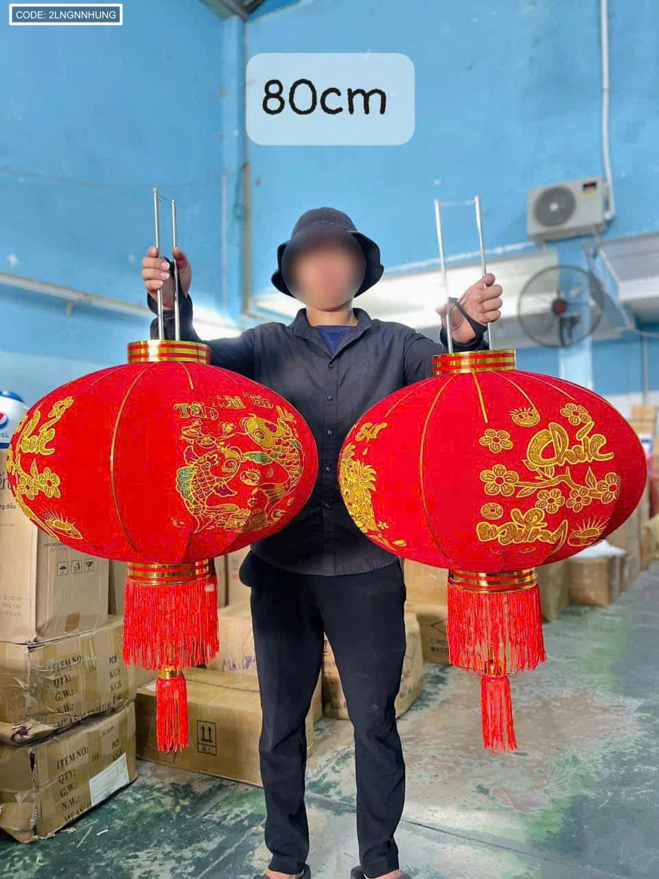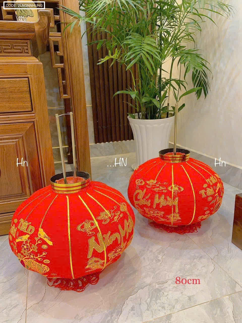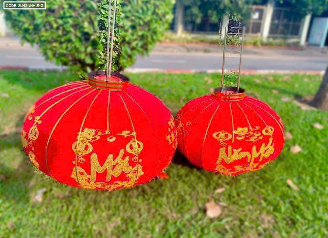 Bỏ sỉ 2 LỒNG ĐÈN NHUNG KẺ TẾT 80CM(Giá 2 cái)