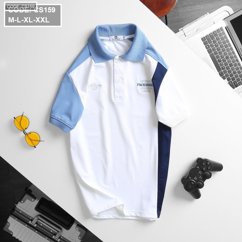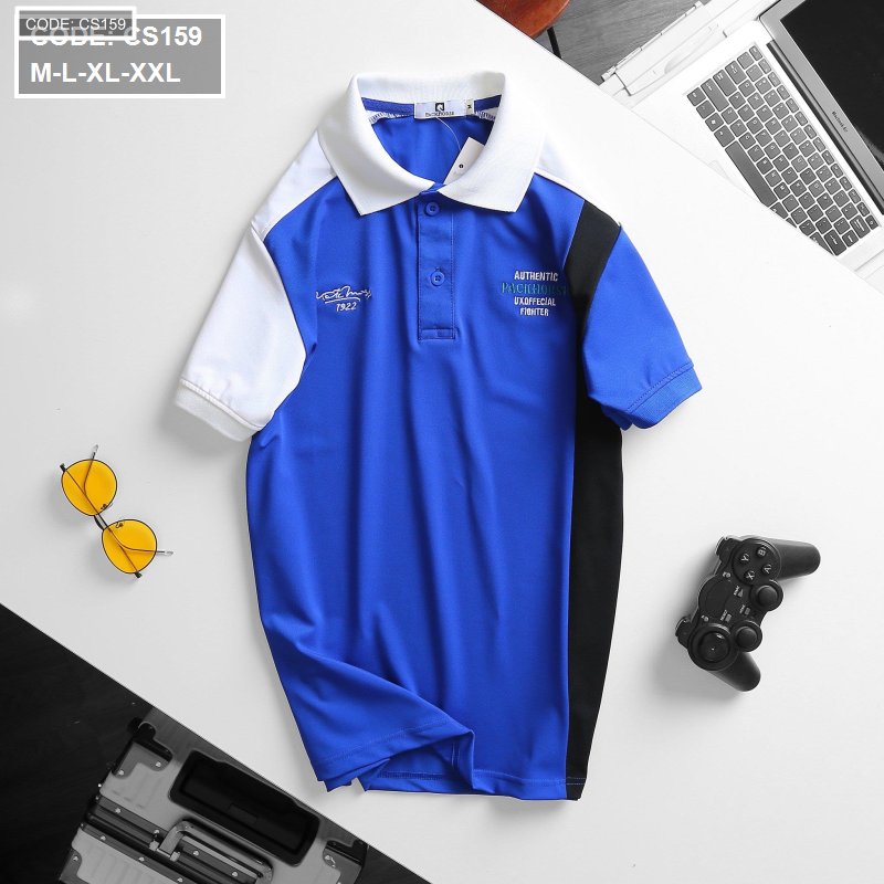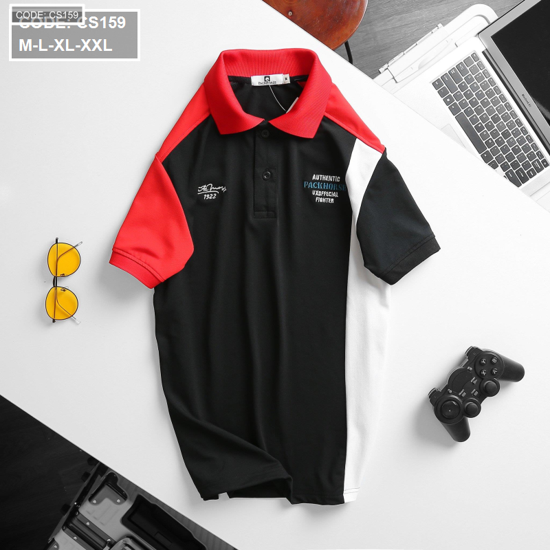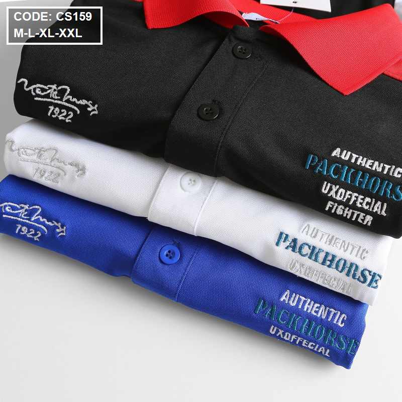 Bỏ sỉ áo Thun Nam Cá Sấu Poly Cổ Bẻ Ghép Vải Thêu Chữ