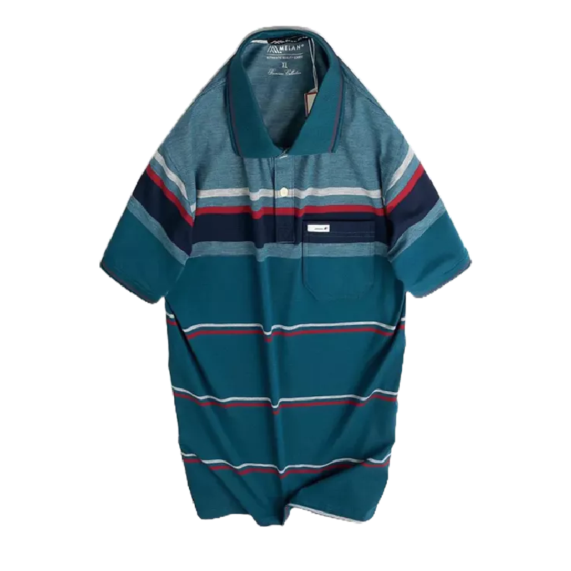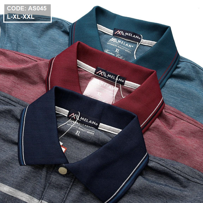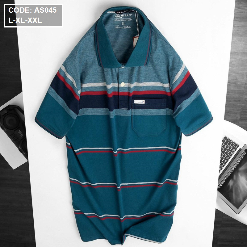 Bỏ sỉ áo thun nam cổ bẻ in sọc xanh