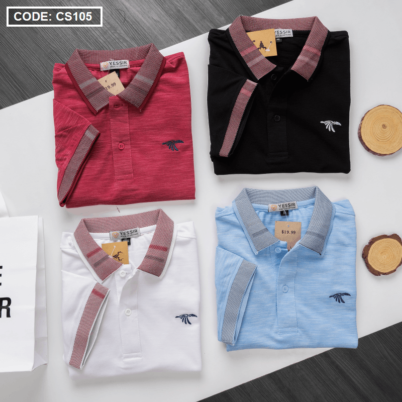 Bỏ sỉ áo thun nam cổ bẻ thêu hình két