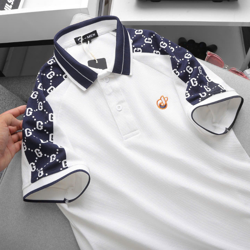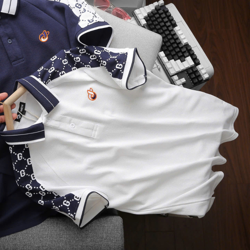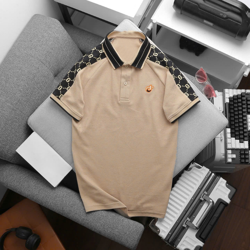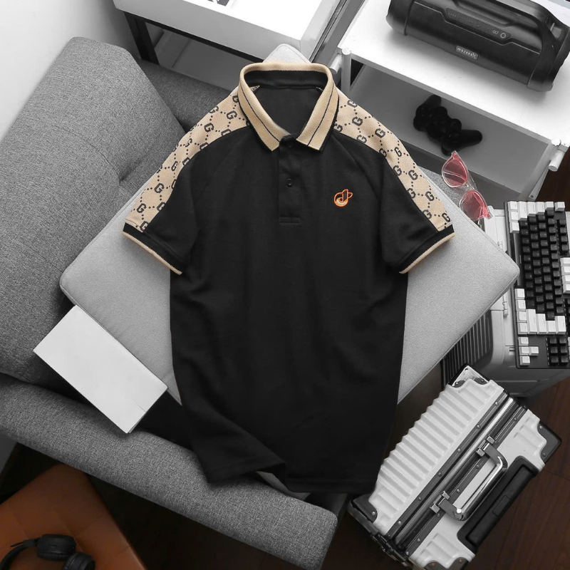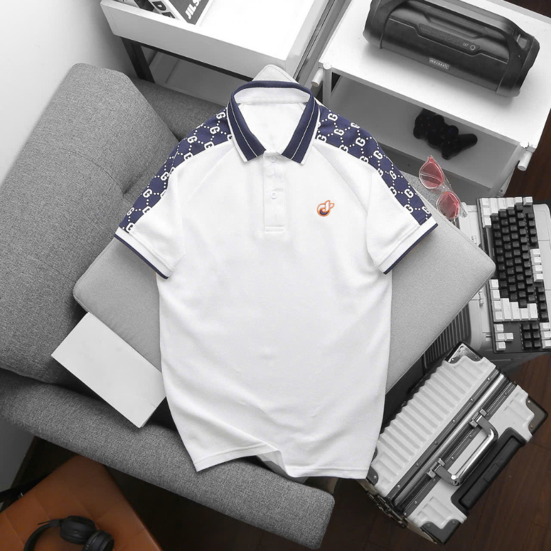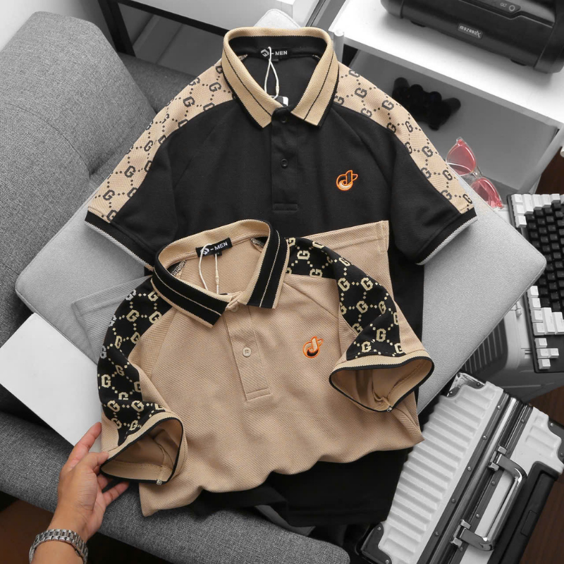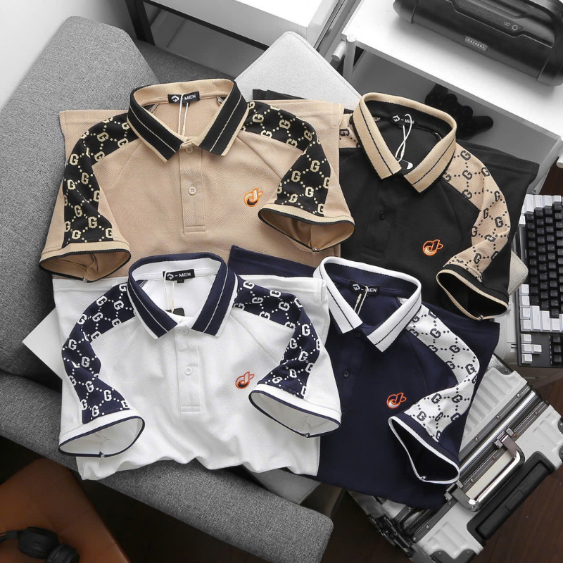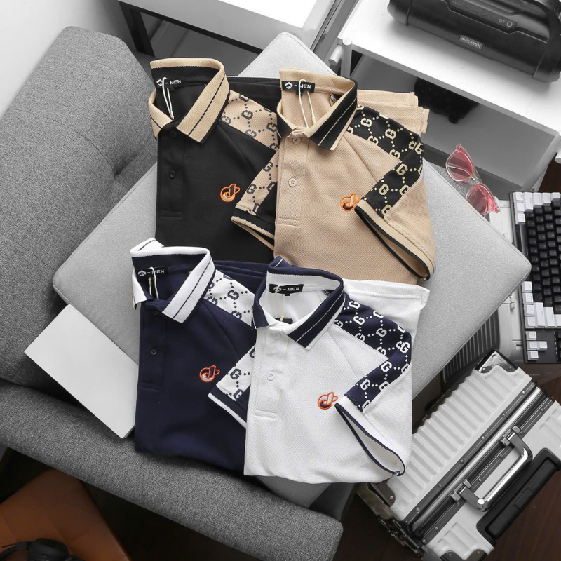 Bỏ sỉ áo Thun Nam Cổ Bẻ Thêu Logo Trước Ngực & Phối Họa Tiết Chữ G (Có Size 3xl)