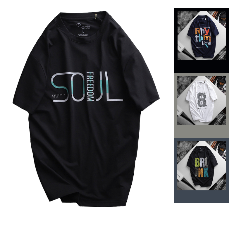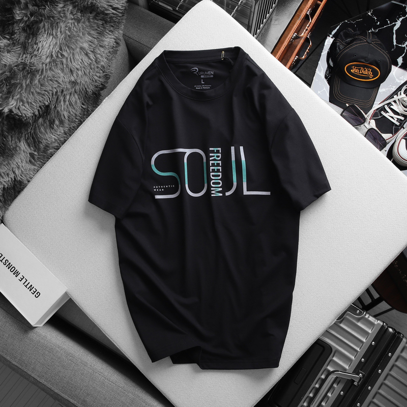 Bỏ sỉ áo Thun Nam Cổ Tròn Rurumen Màu Đen In Chữ SOUL Big Size