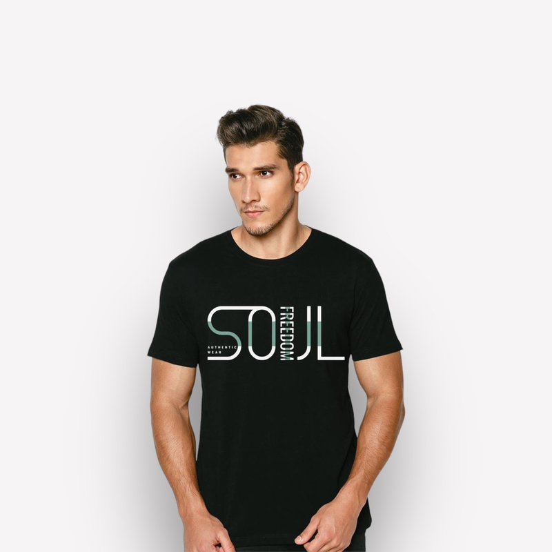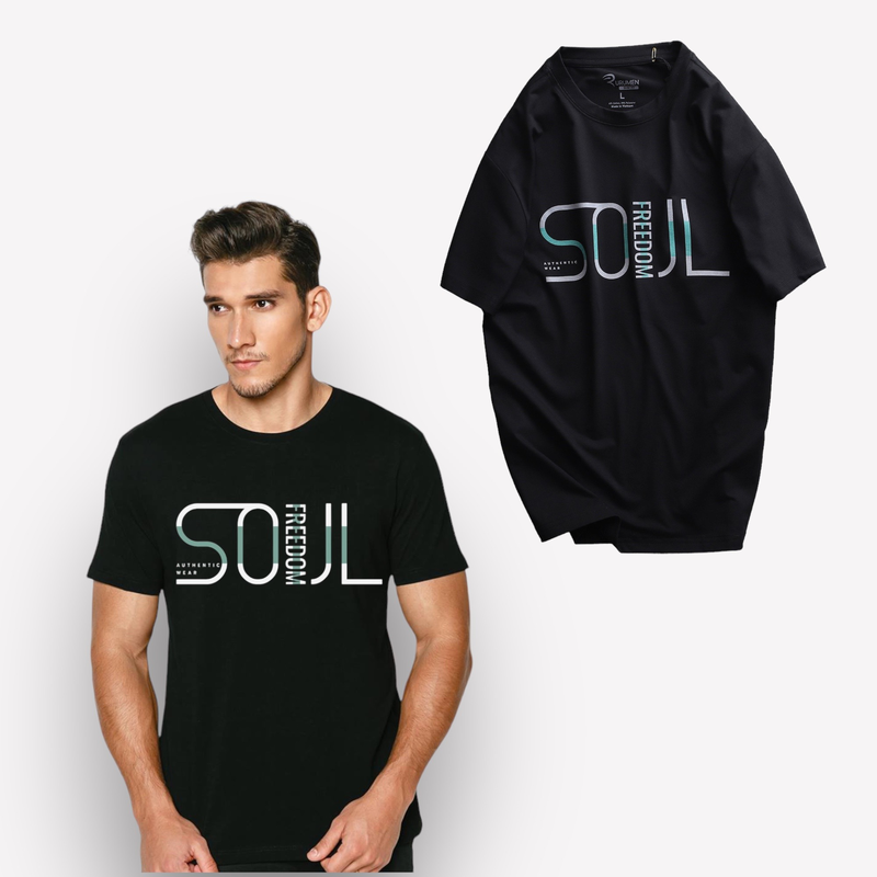 Áo Thun Nam Cổ Tròn Rurumen Màu Đen In Chữ SOUL Big Size