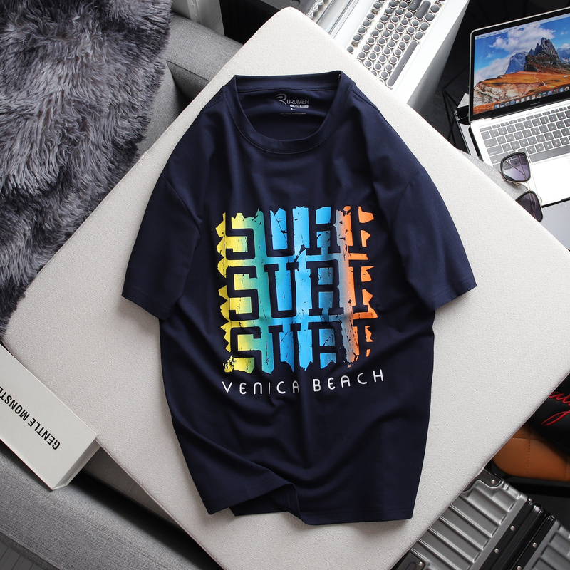 Bỏ sỉ áo Thun Nam Cổ Tròn Rurumen Màu Xanh Đen In SURF Big Size
