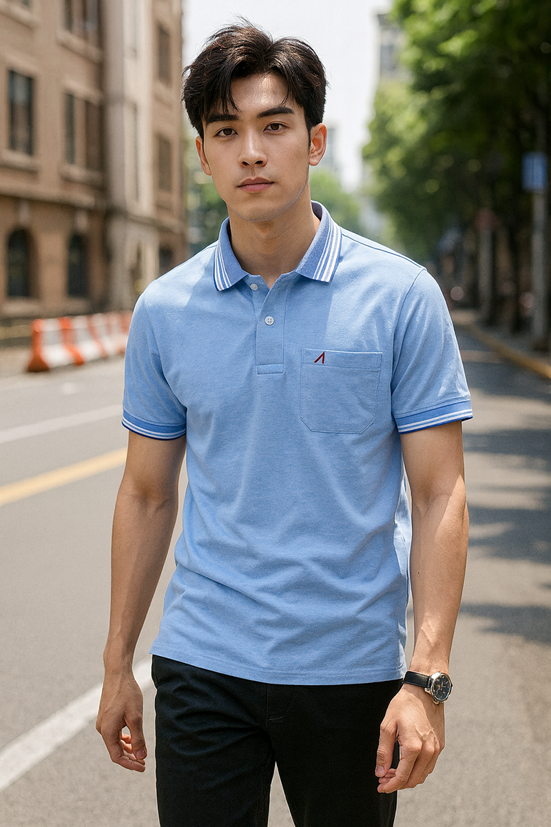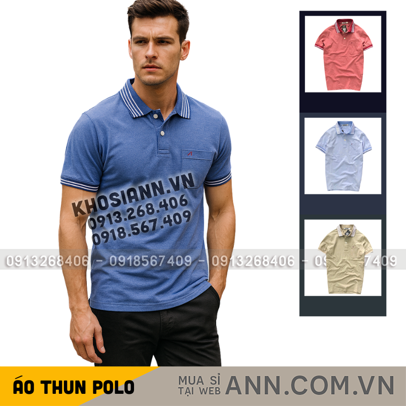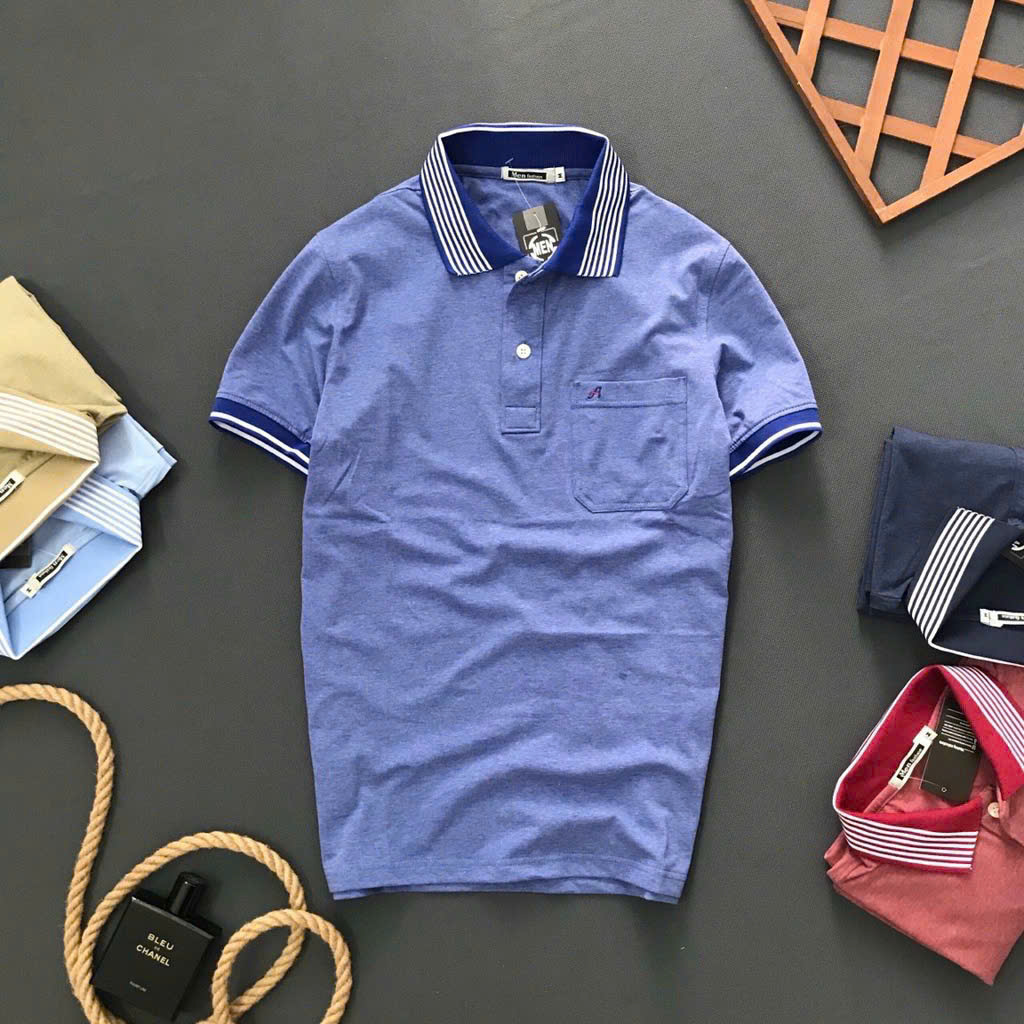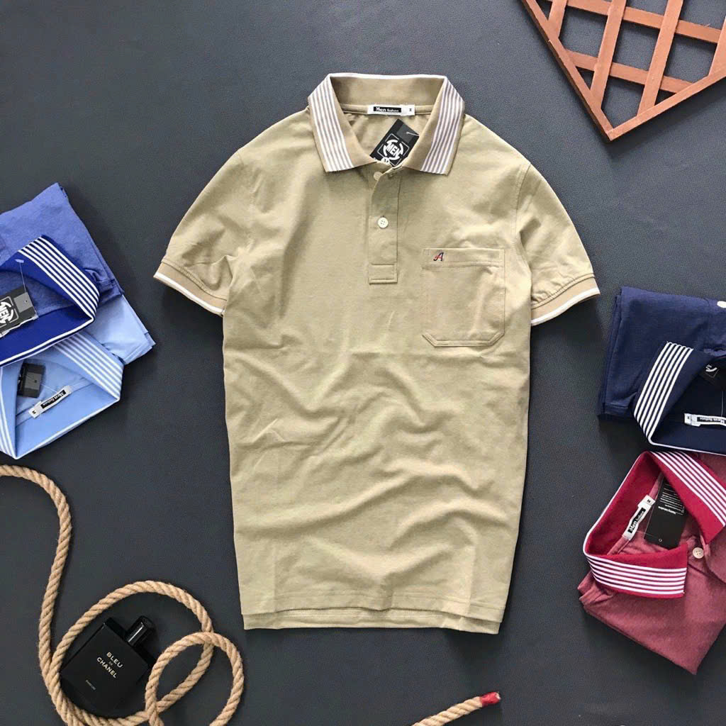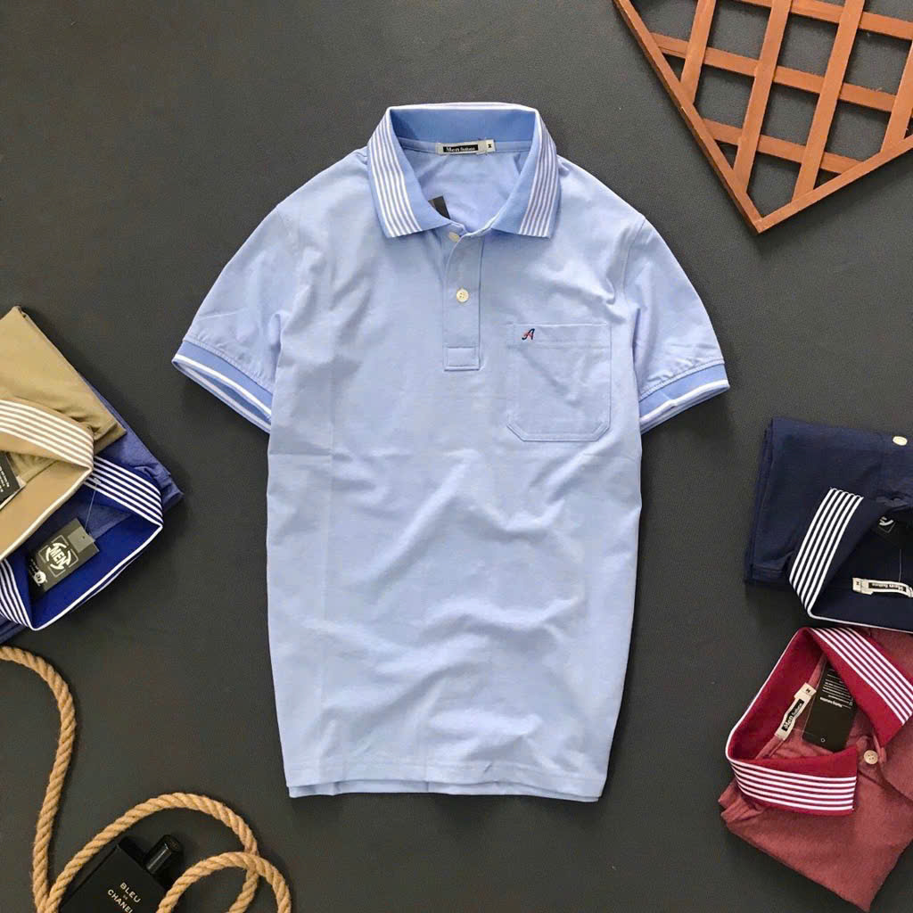 Bỏ sỉ áo Thun Nam Polo Cổ Bẻ Thêu Chữ A Phối Có Túi Thun Cotton