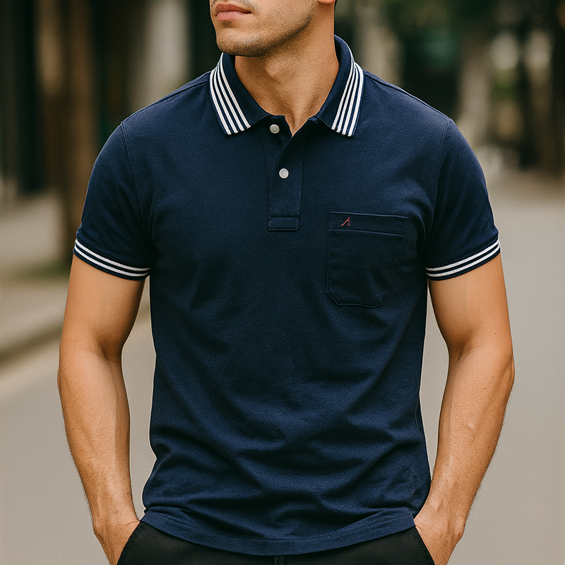 Áo Thun Nam Polo Cổ Bẻ Thêu Logo Chữ A Có Túi – Cotton Cao Cấp Thoáng Mát 👕✨