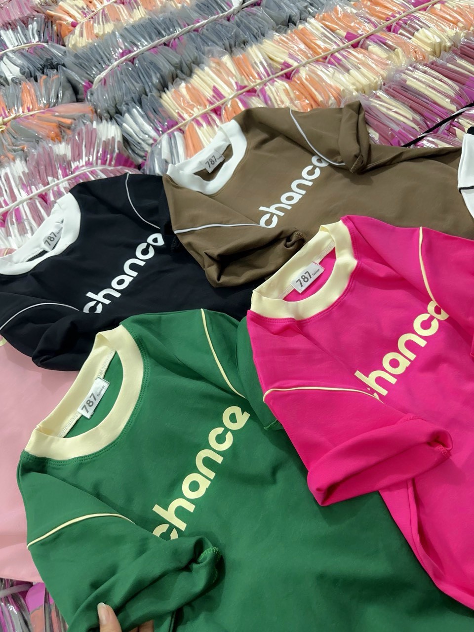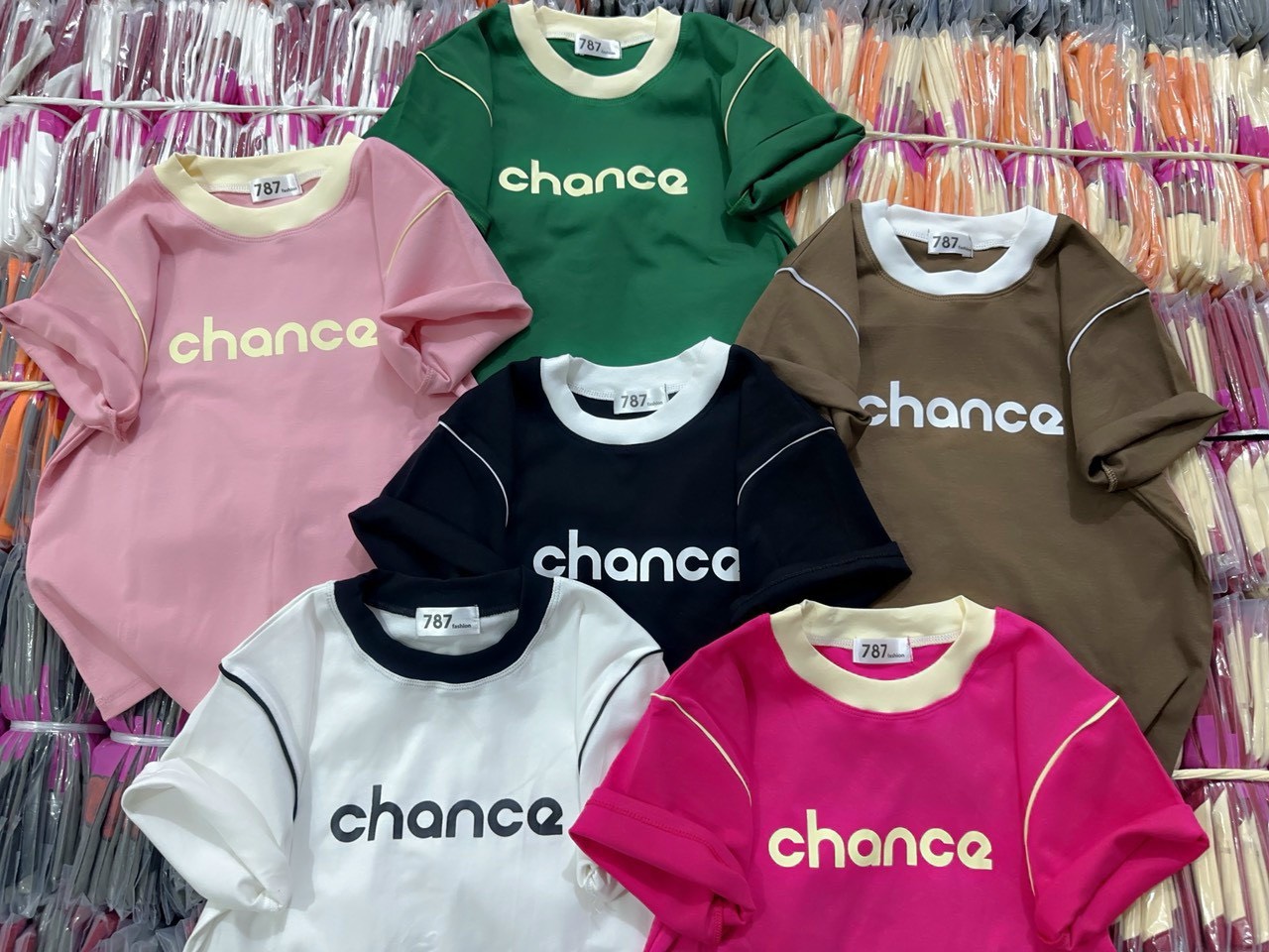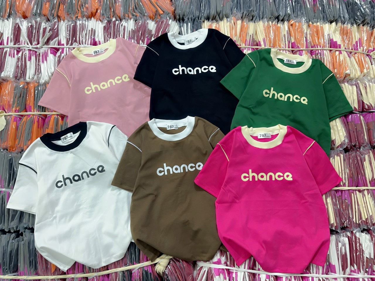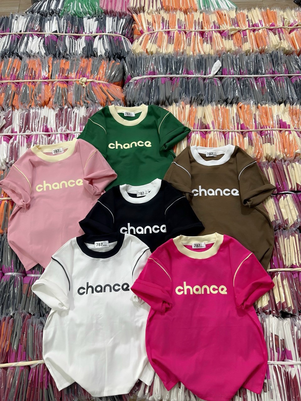 Bỏ sỉ áo thun nữ Baby Tee ôm body từ 35kg – 55kg in chữ CHANCE