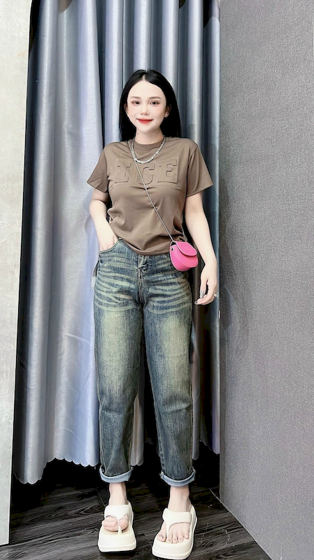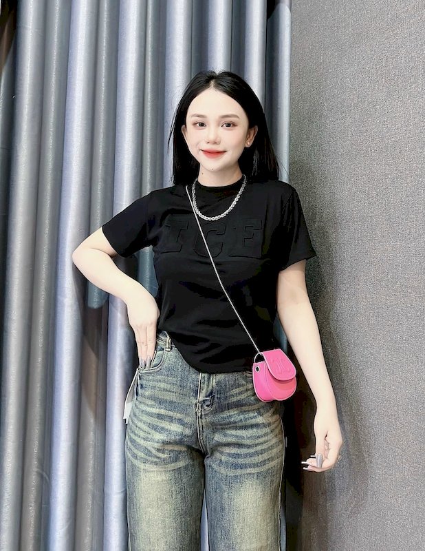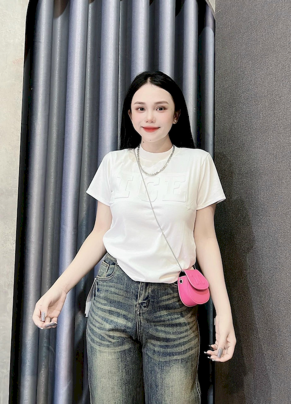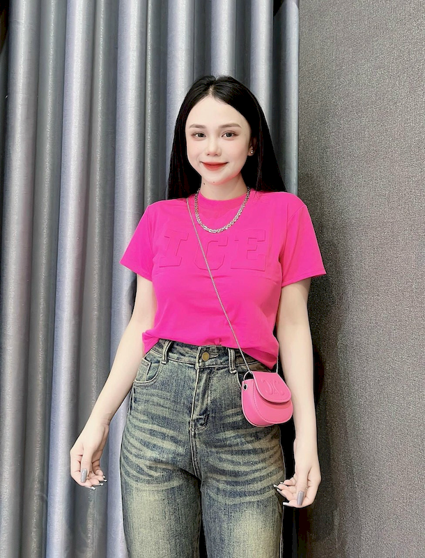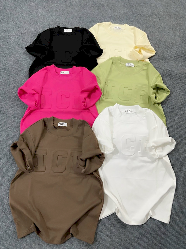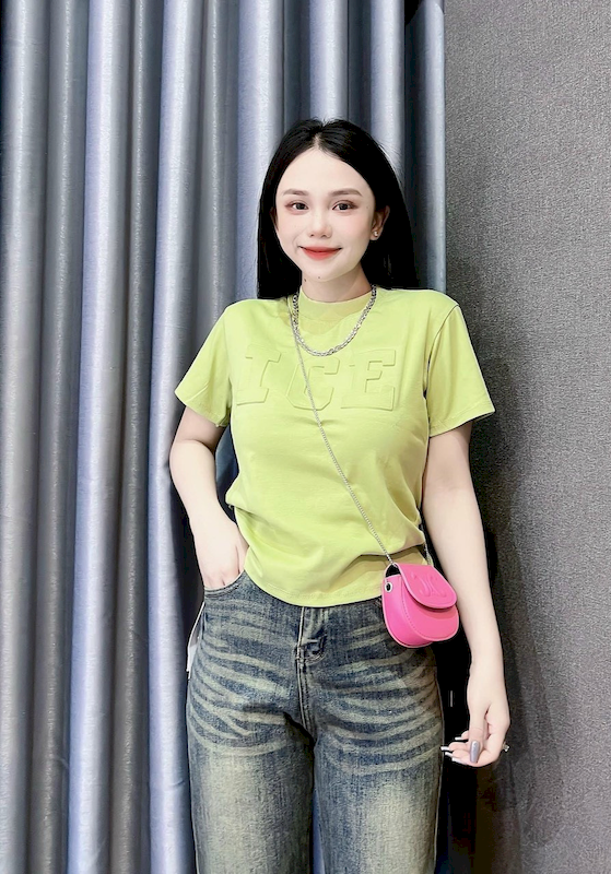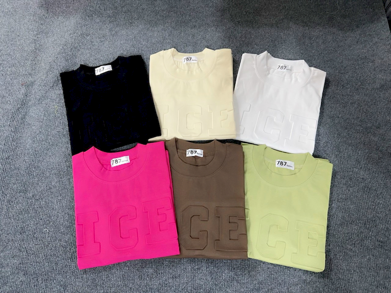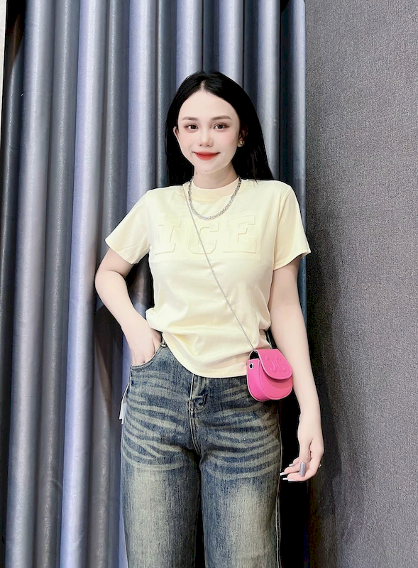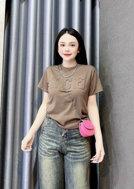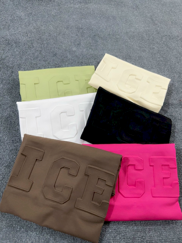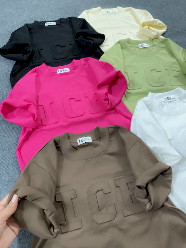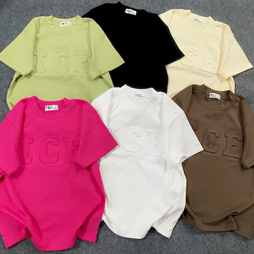 Bỏ sỉ áo Thun Nữ Cổ Tròn Baby Tee In Dập Nổi Chữ ICE Mạc AH787