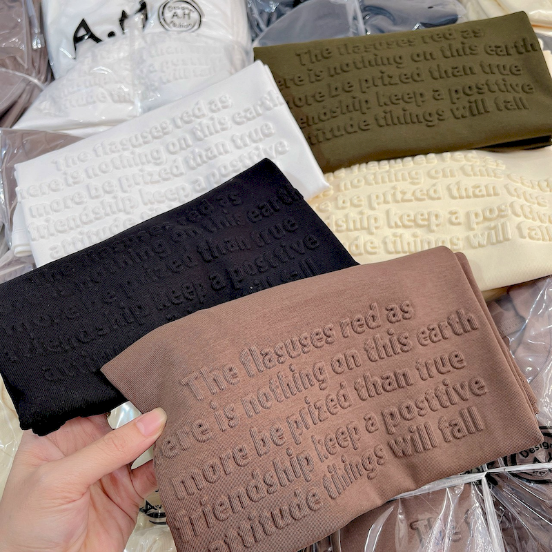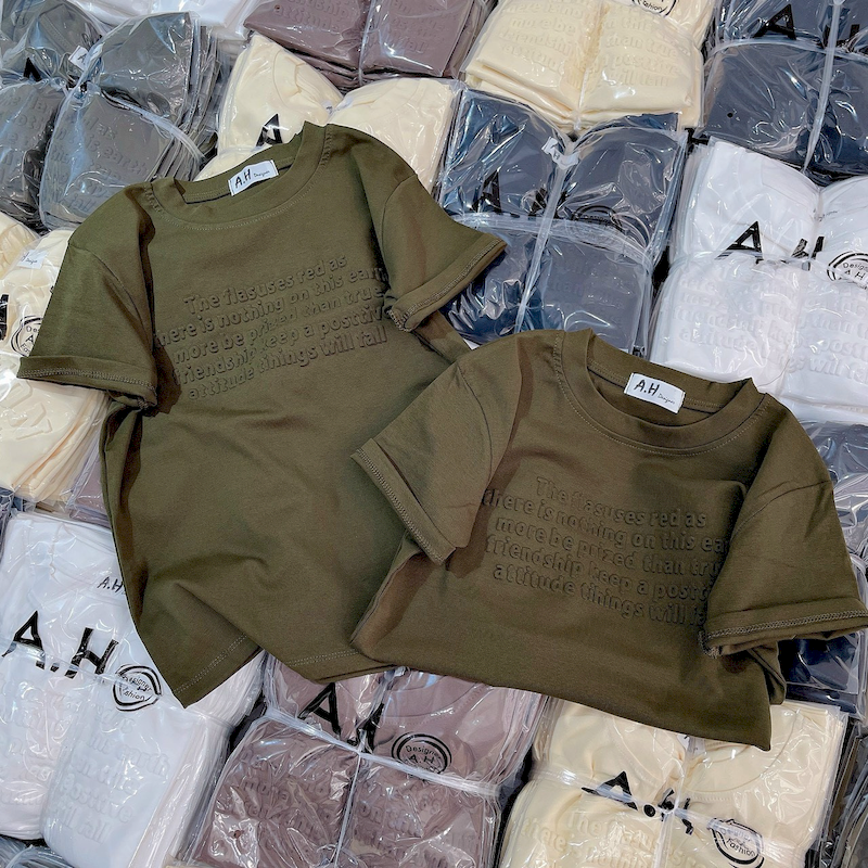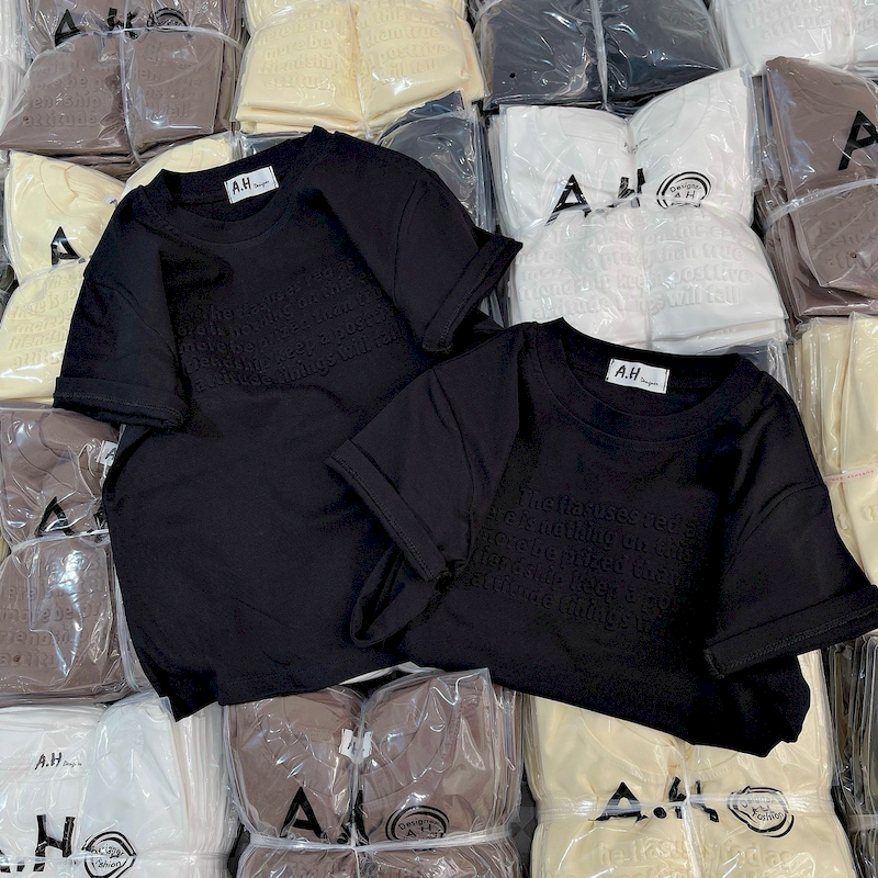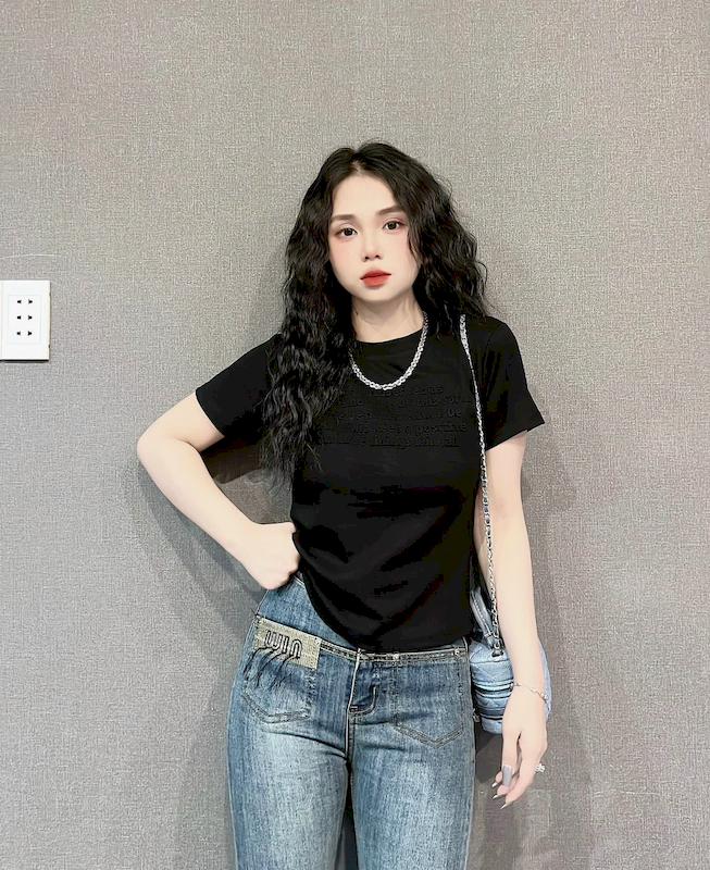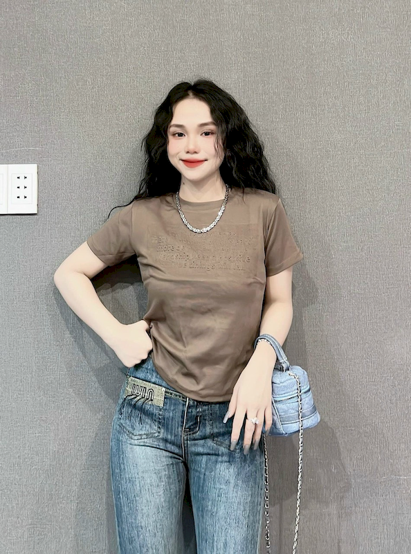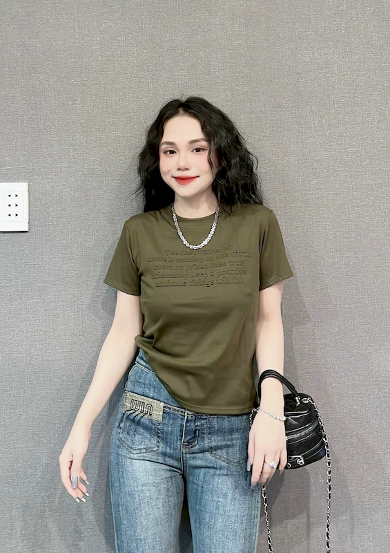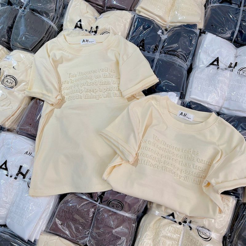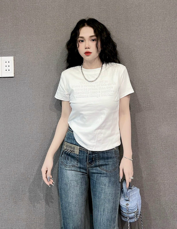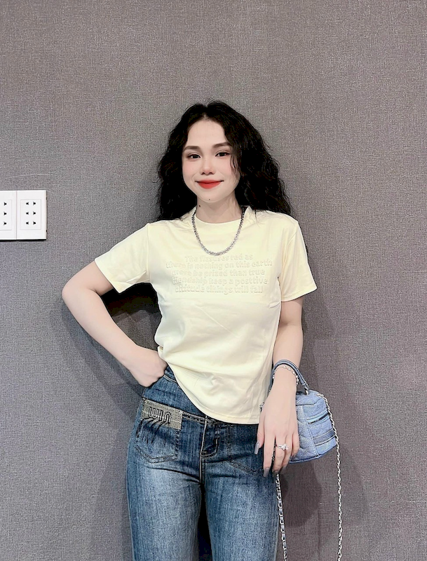 Bỏ sỉ áo Thun Nữ Cổ Tròn Baby Tee In Dập Nổi Chữ Nhuyễn Mạc AH787