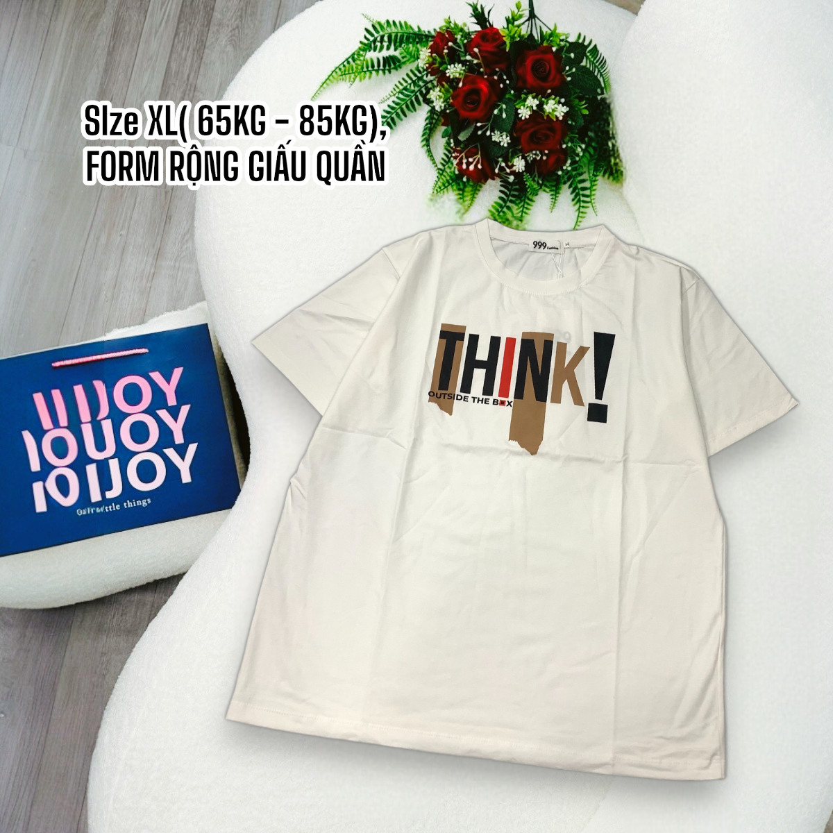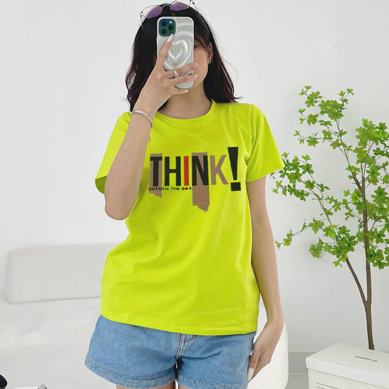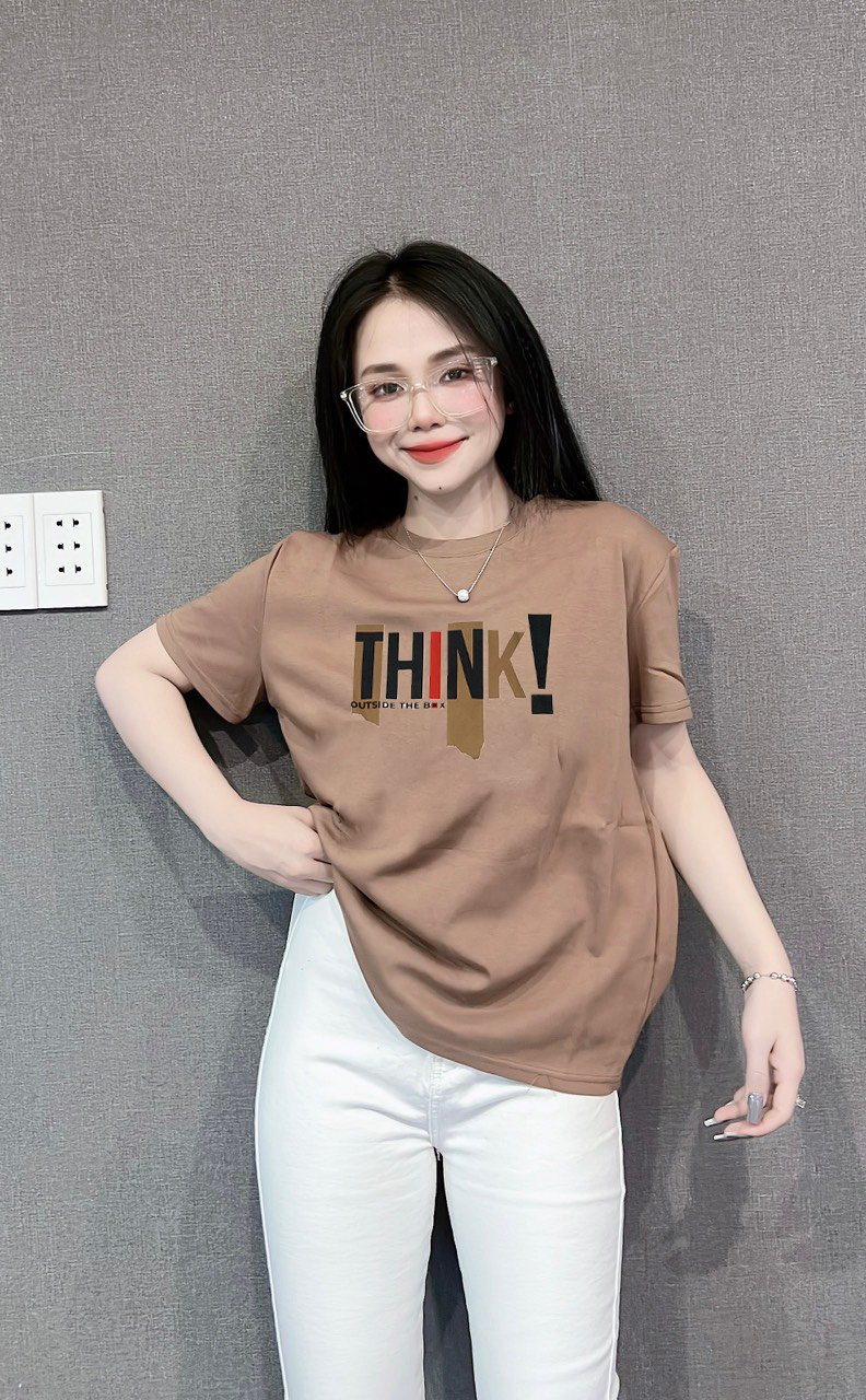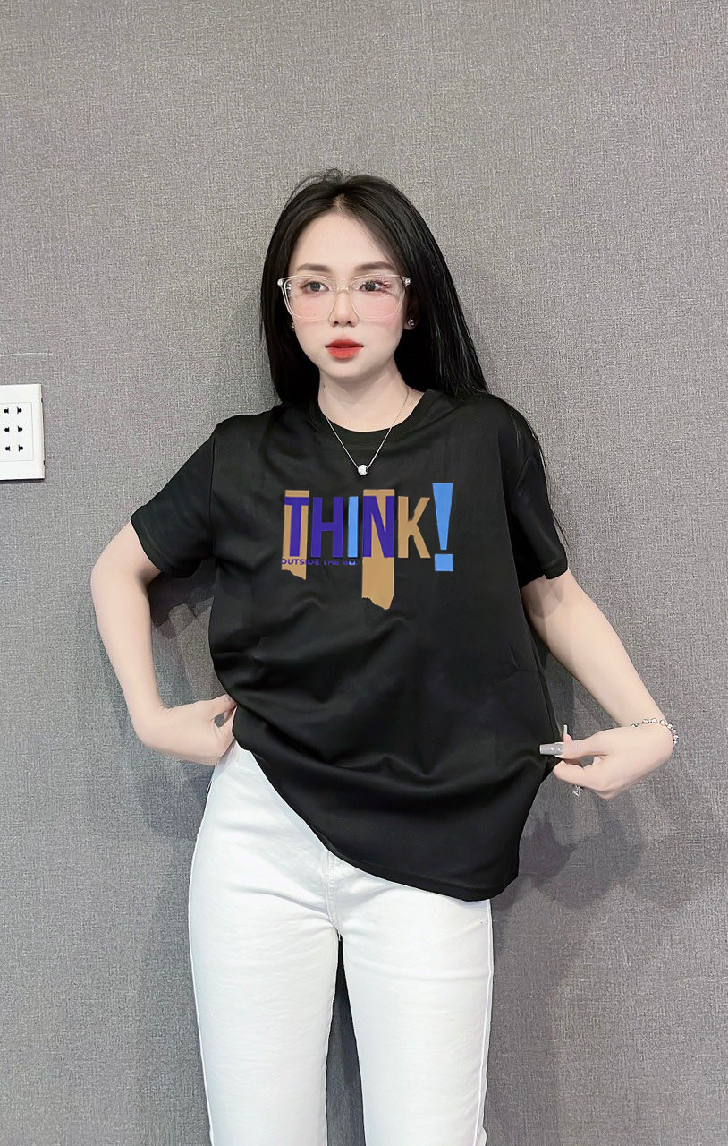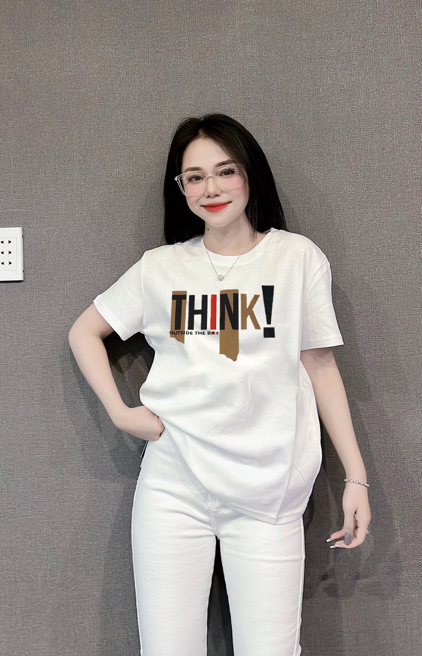 Bỏ sỉ áo Thun Nữ Cổ Tròn Form Đại In Chữ THINK Size XL(65-85kg)