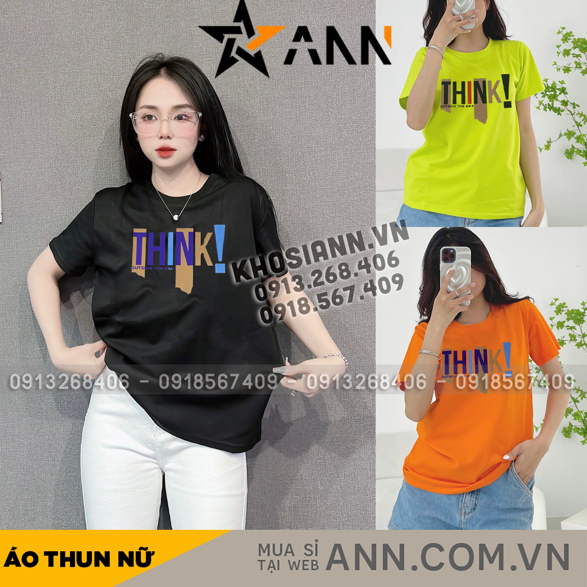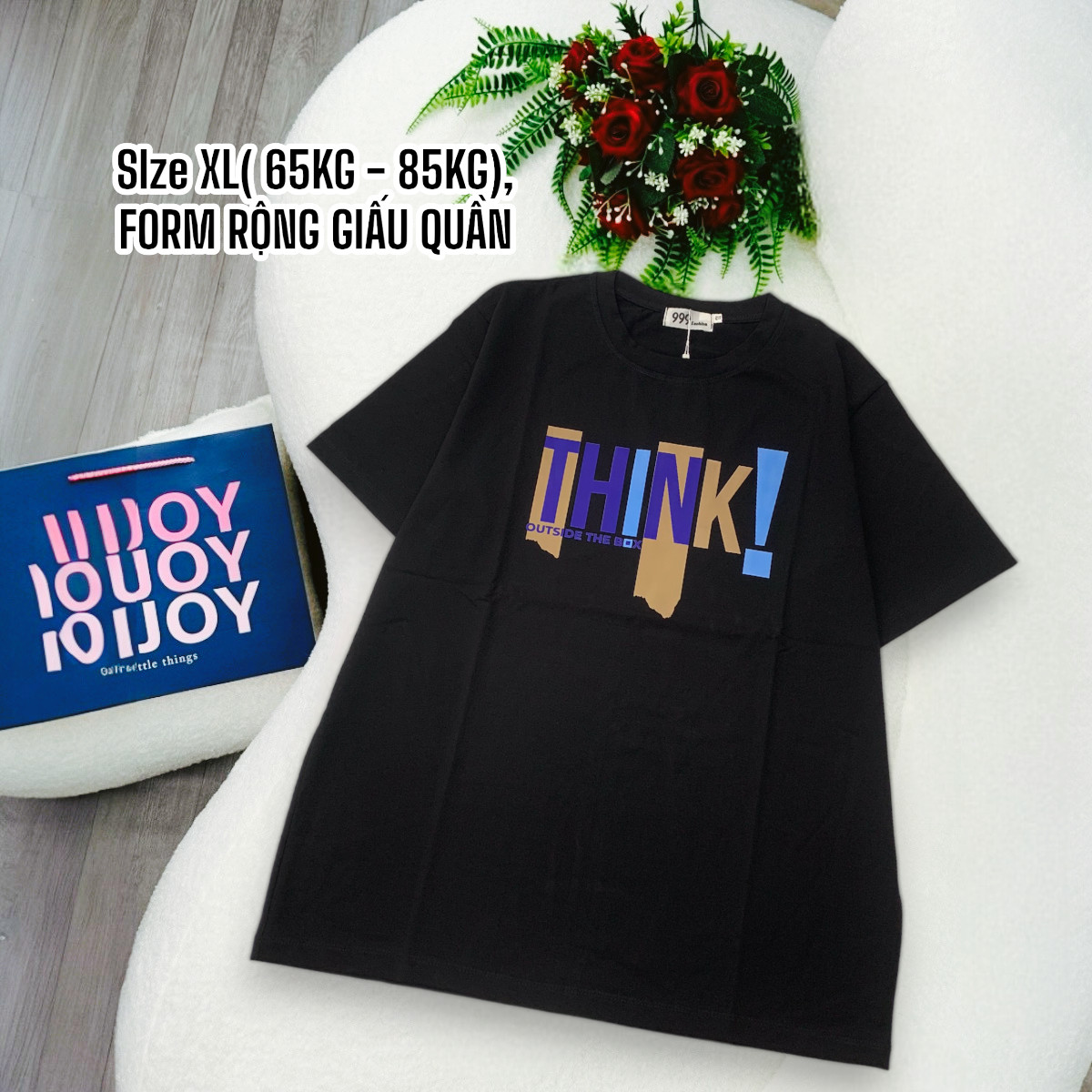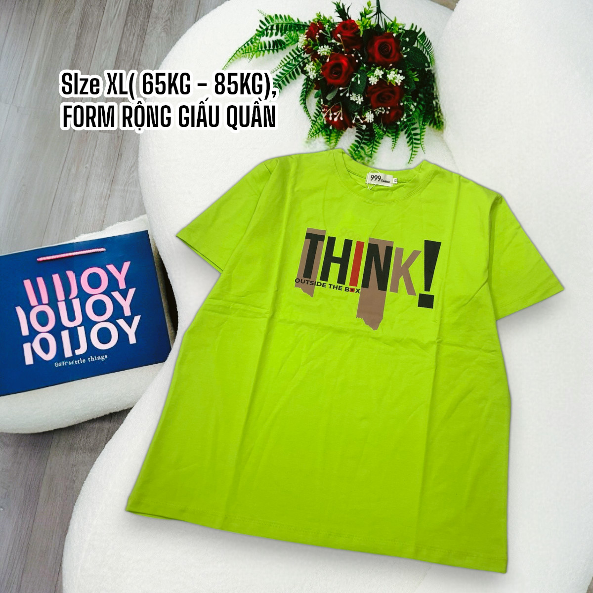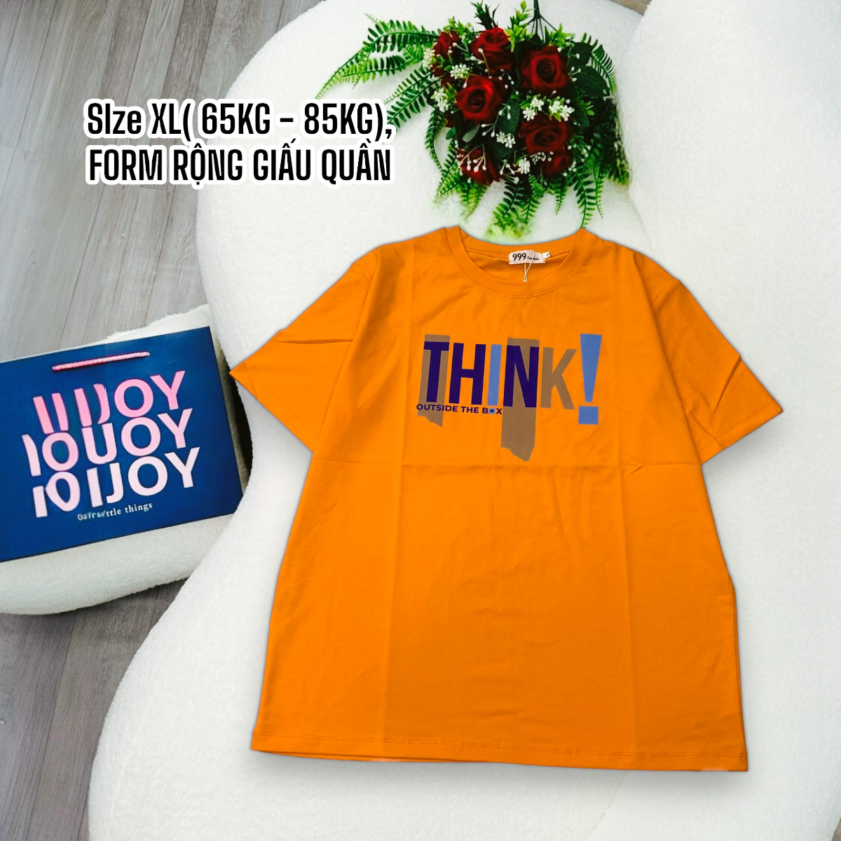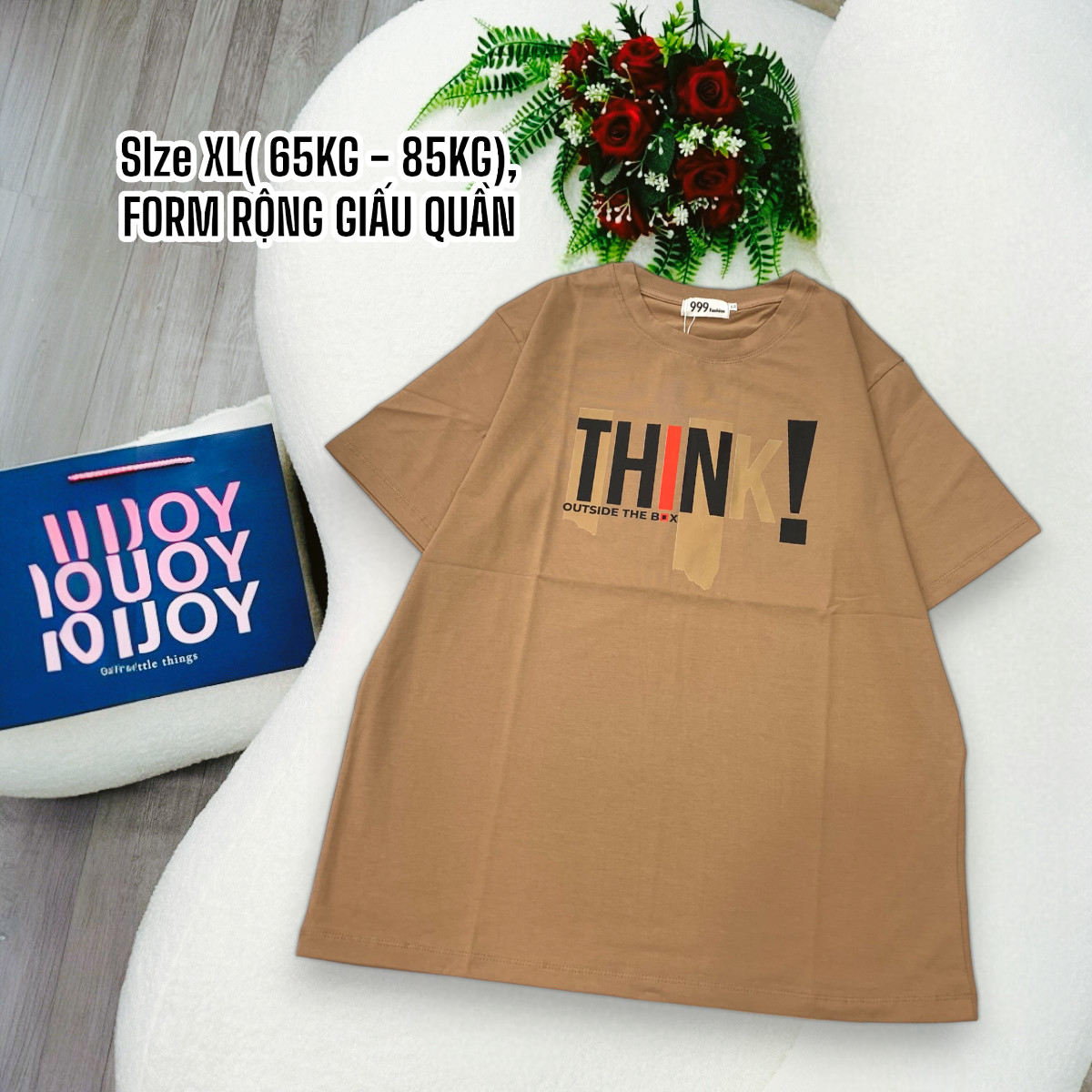 Bỏ sỉ áo Thun Nữ Cổ Tròn Form Đại In Chữ THINK Size XL(65-85kg)