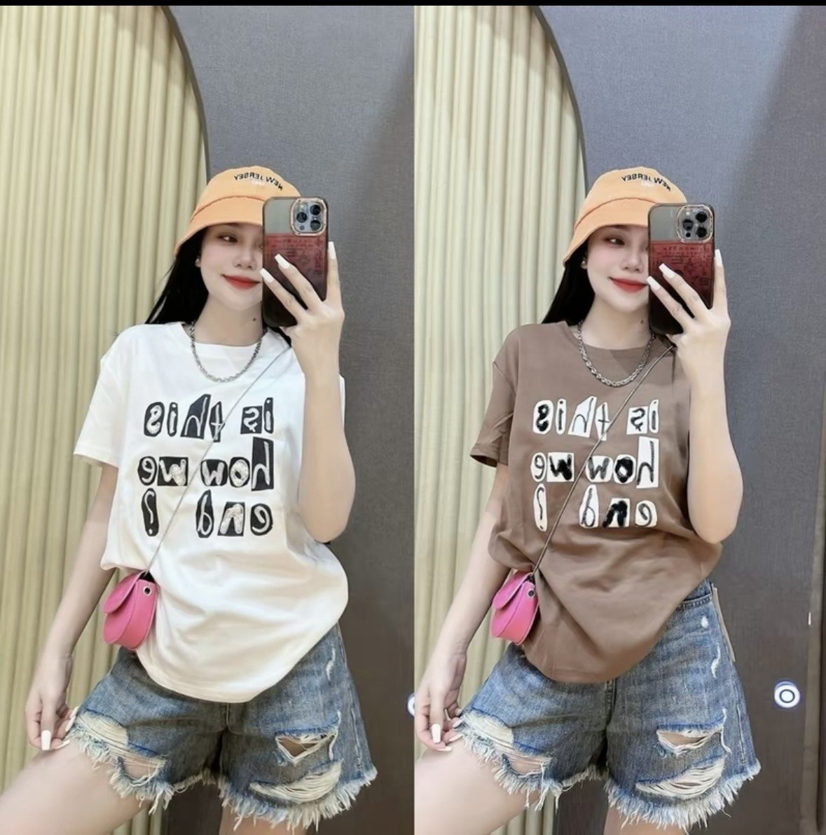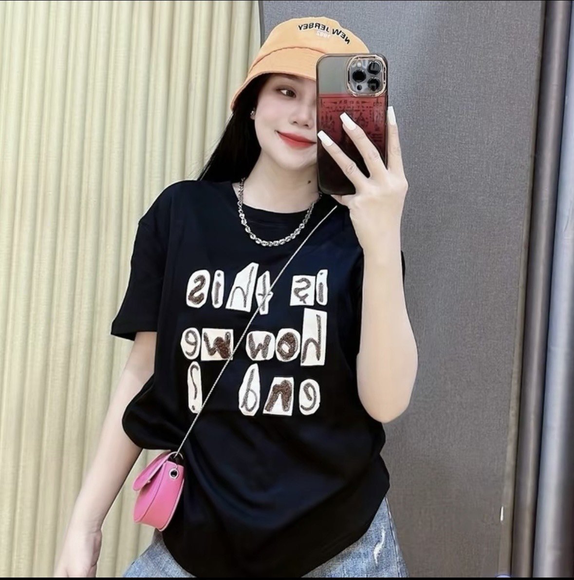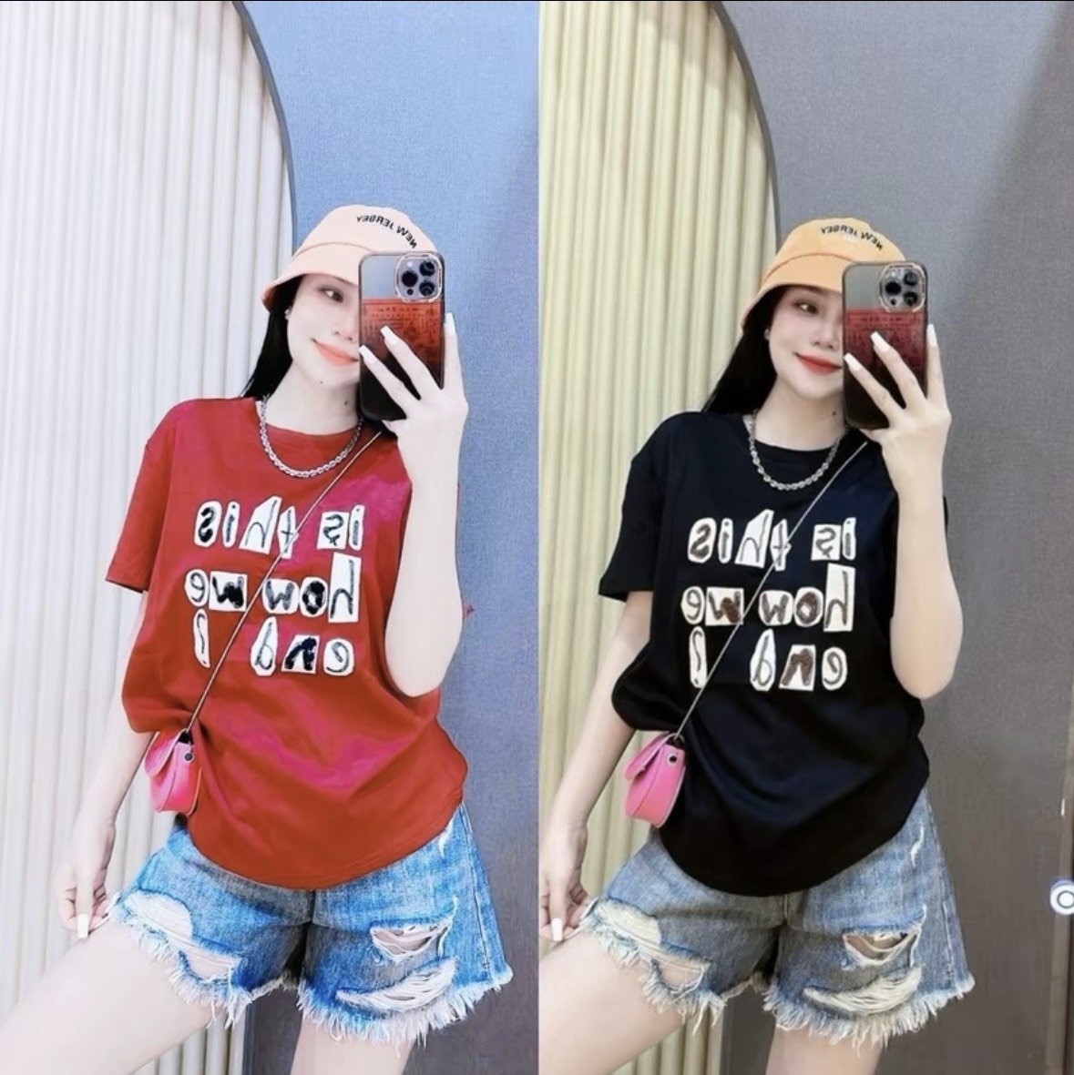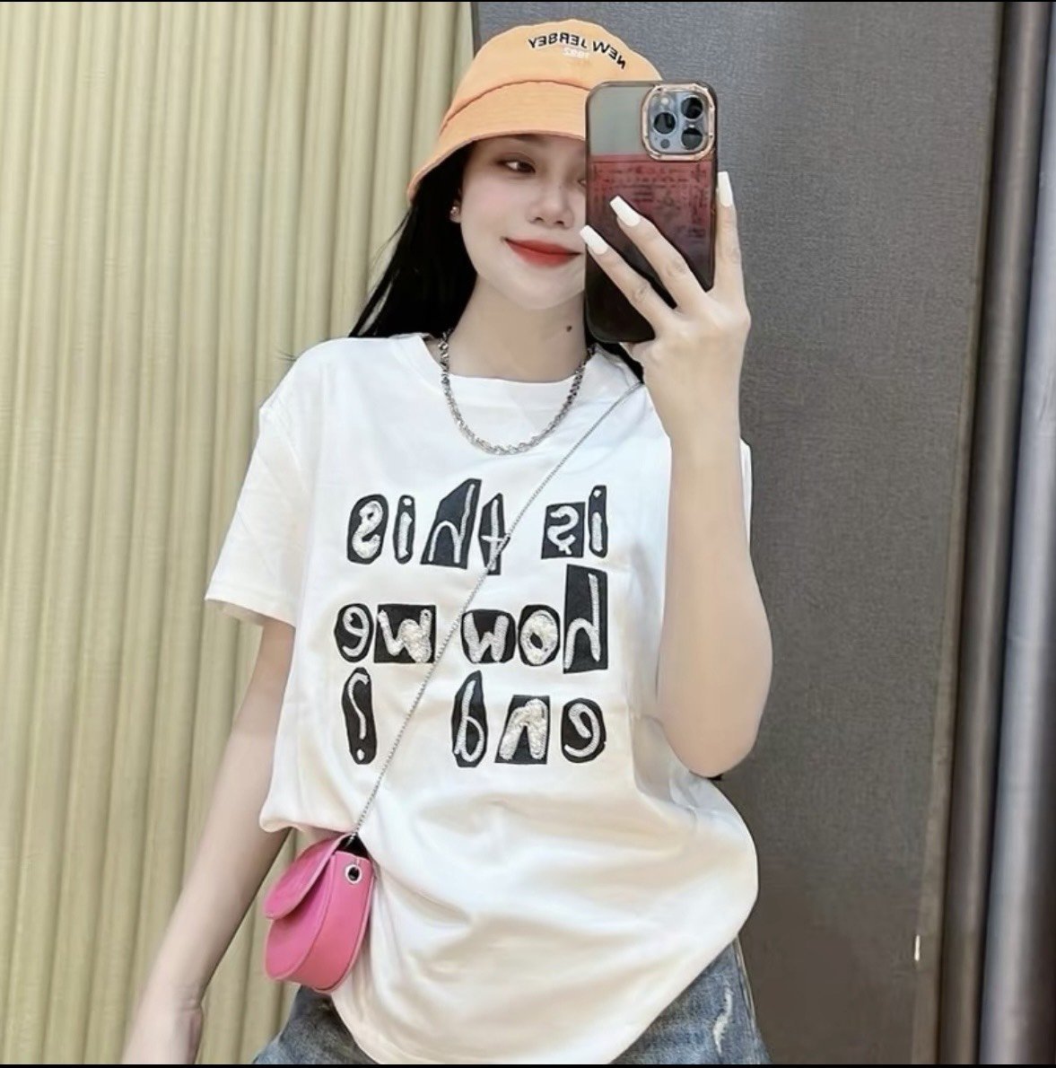 Bỏ sỉ áo Thun Nữ Cổ Tròn form vừa in chữ nổi size M(40-60kg)