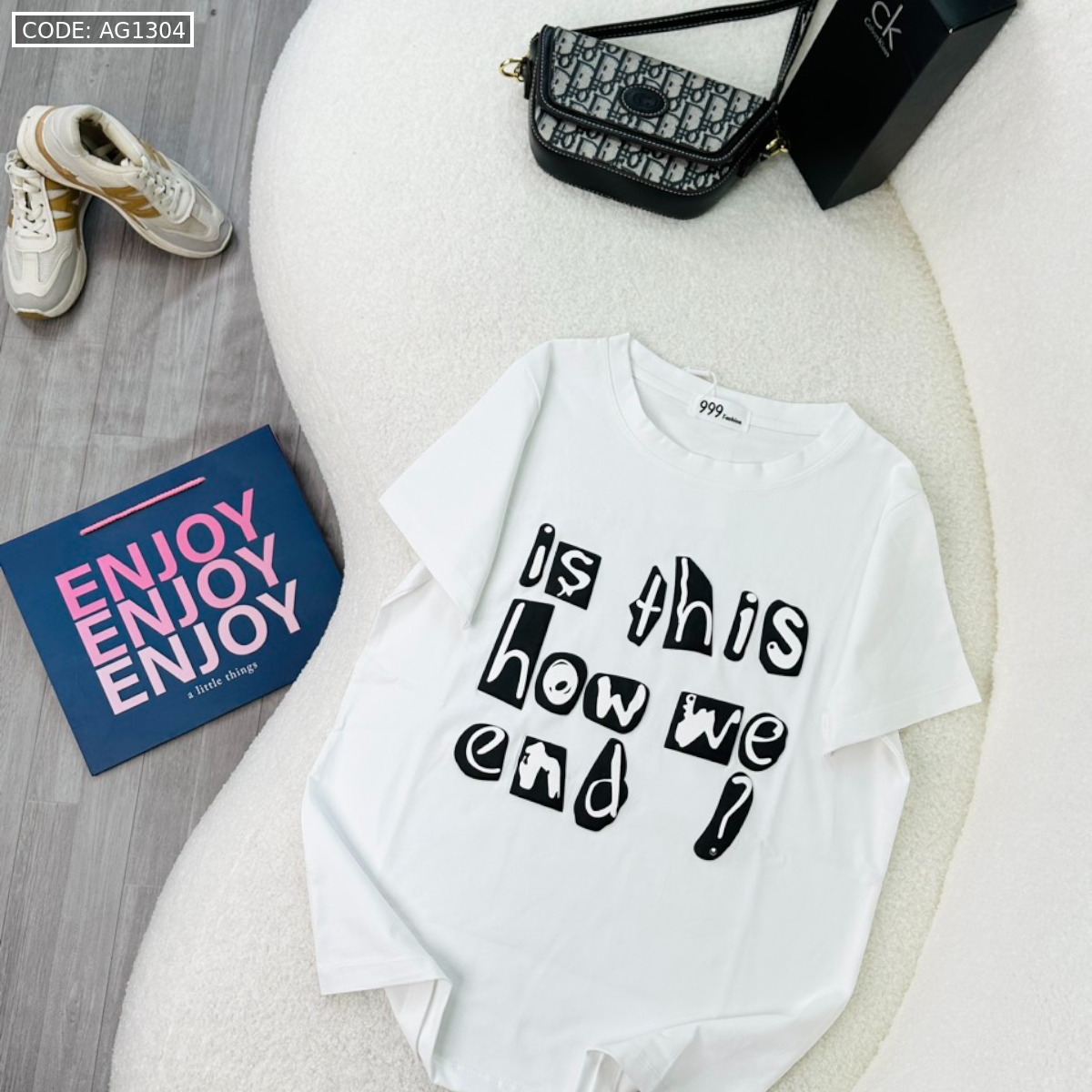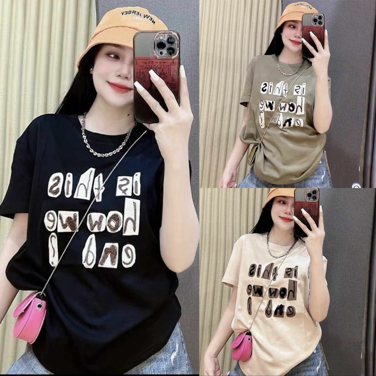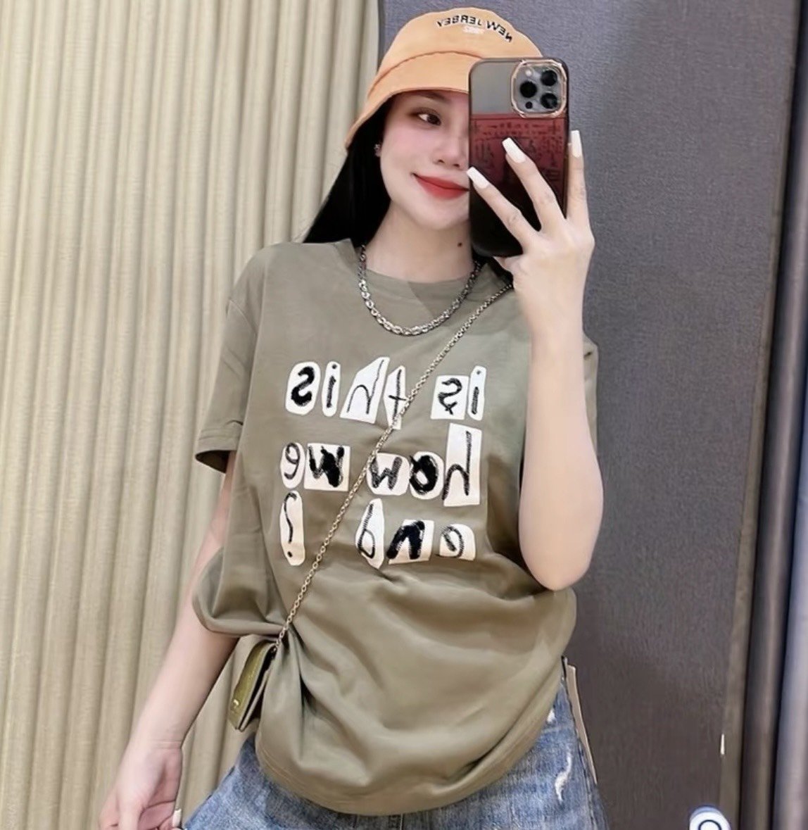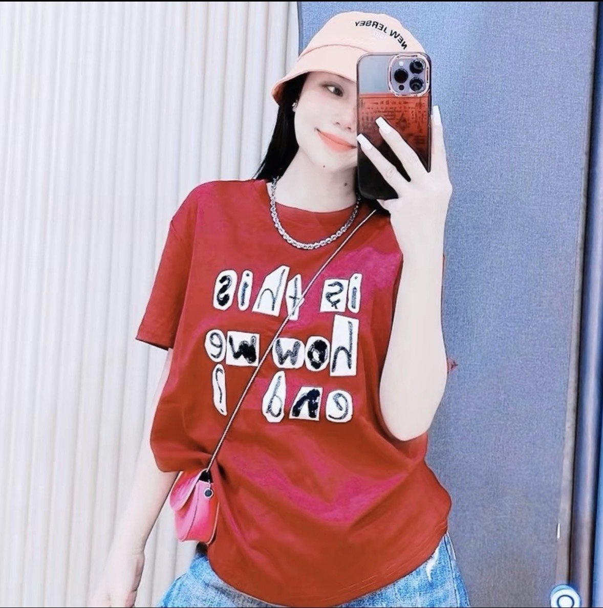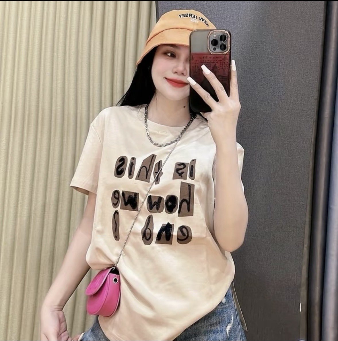 Bỏ sỉ áo Thun Nữ Cổ Tròn form vừa in chữ nổi size M(40-60kg)