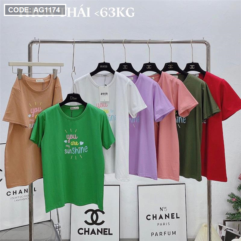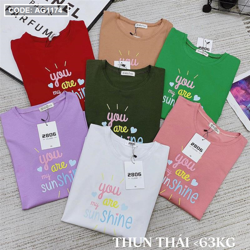Bỏ sỉ áo thun thái nữ cổ tròn in chữ sun shine form rộng
