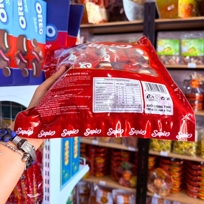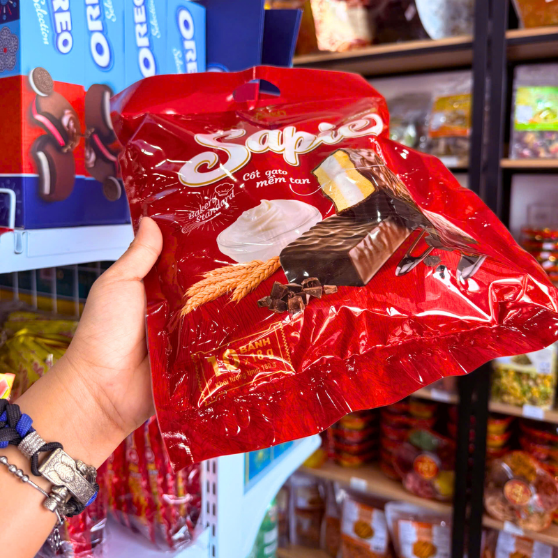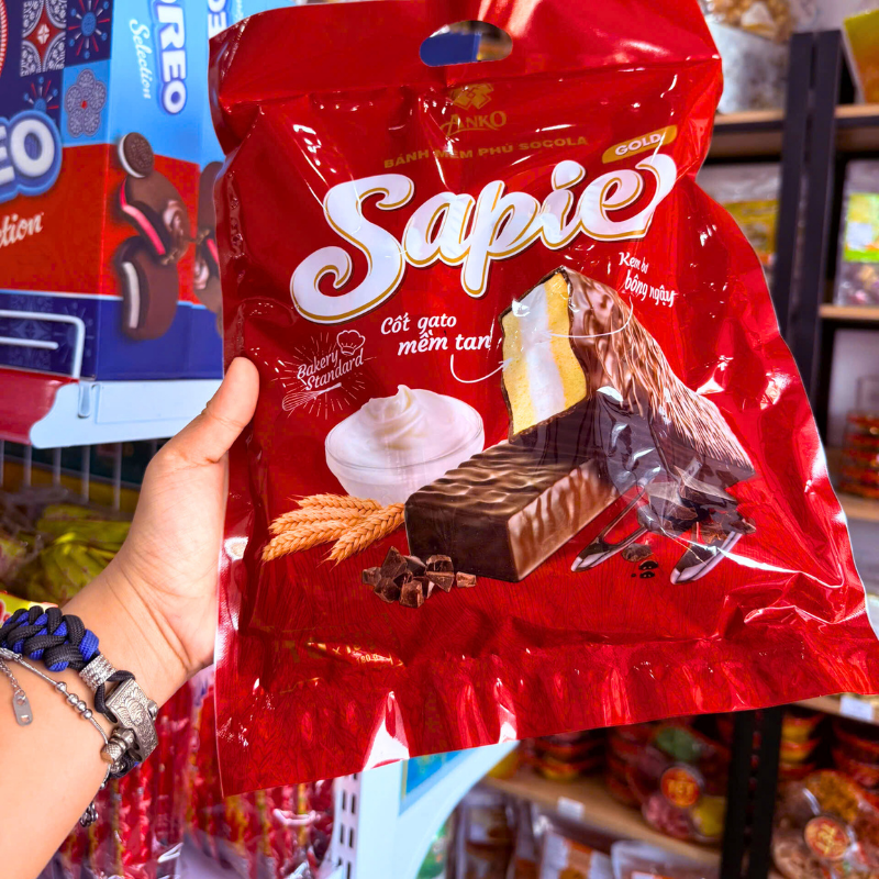 Bỏ sỉ bánh Bông Lan Phủ Socola SAPIE Gold Túi 180g (10 Bánh x 18g)