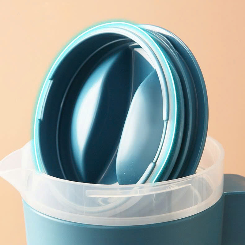 Thiết kế dạng hình trụ, cao có thể bỏ vừa 4 ly nhựa đi kèm, thuận tiện khi cần mang đi xa sử dụng.