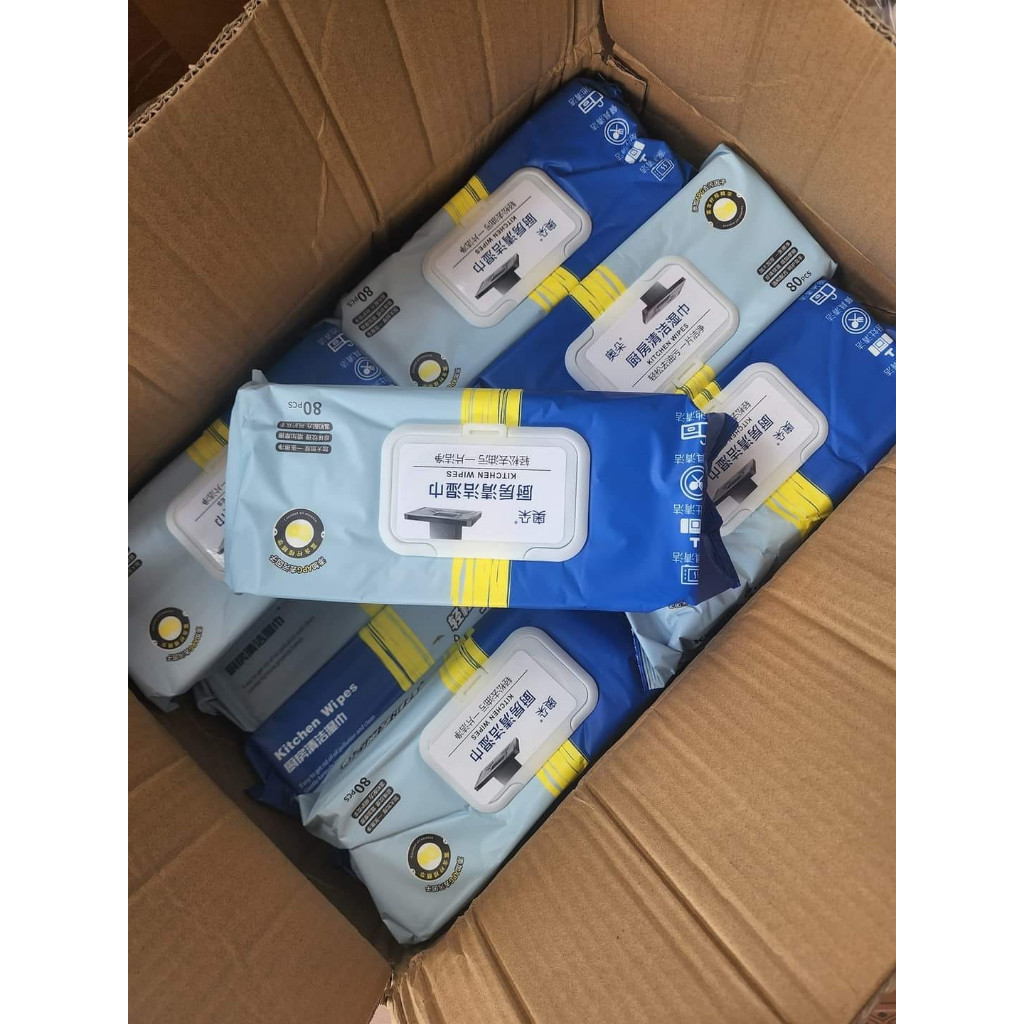 Combo 3 Bịch Khăn Ướt Lau Bếp Đa Năng – Khăn Lau Bàn Bếp Bát Đĩa Đa Năng An Toàn 1 Gói 80 Miếng 30x11x5cm