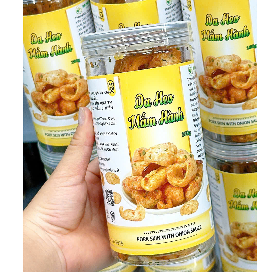 Bỏ sỉ da Heo Mắm Hành Thơm Ngon Đậm Vị 160g Hộp