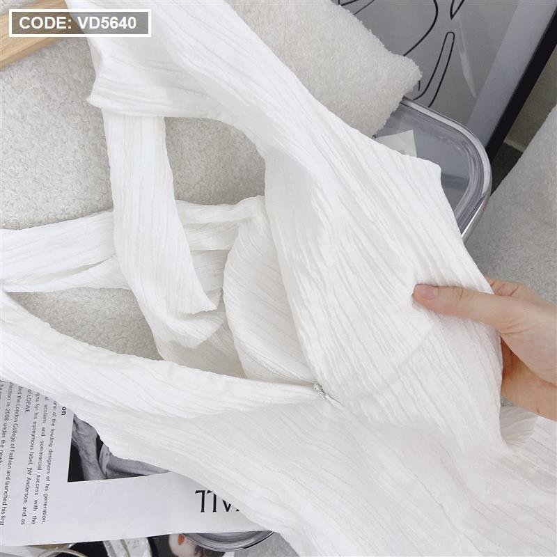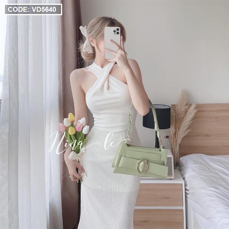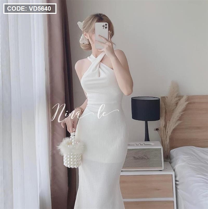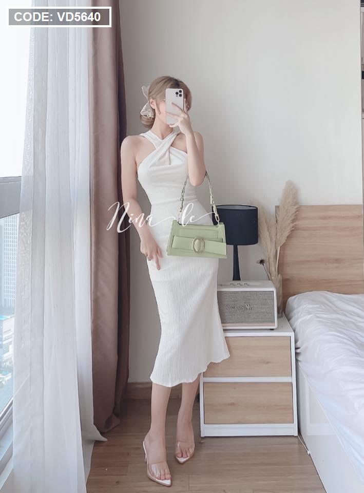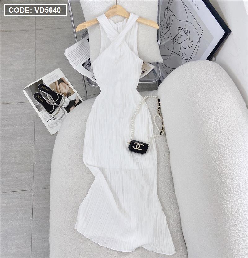 Bỏ sỉ đầm maxi trắng cổ yếm chéo