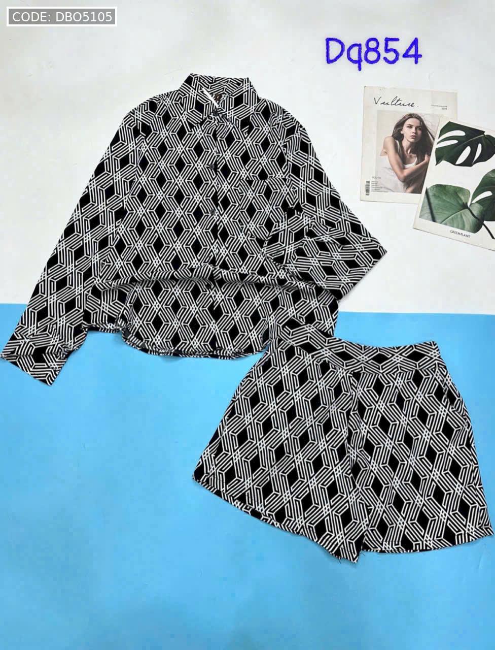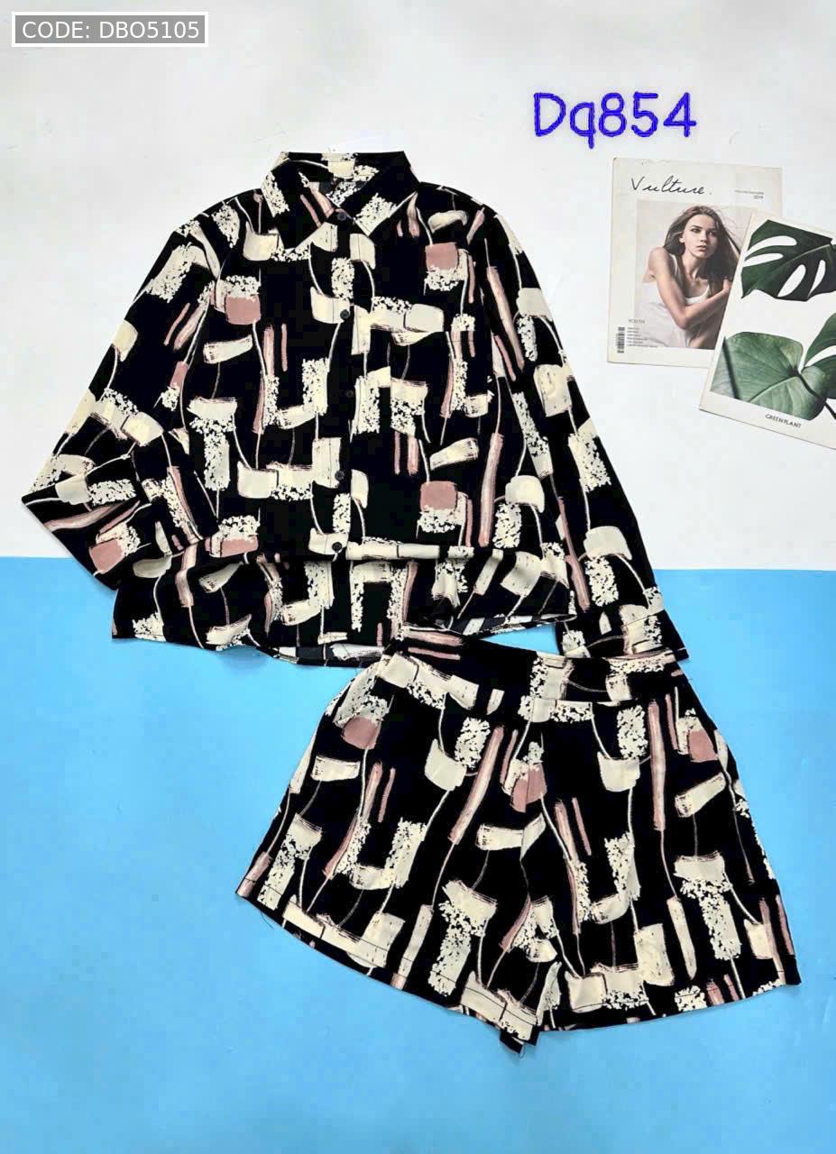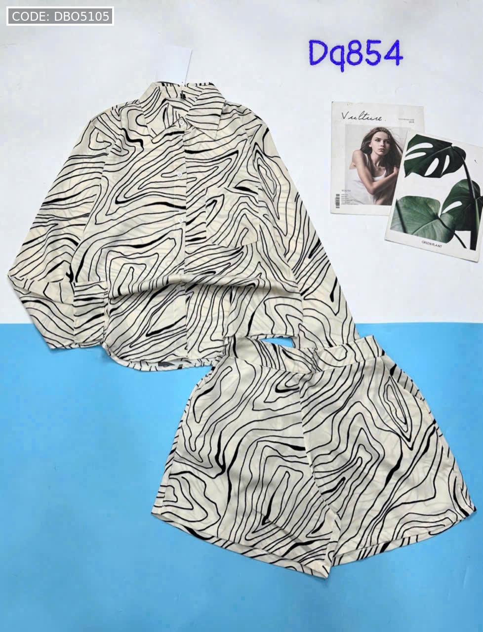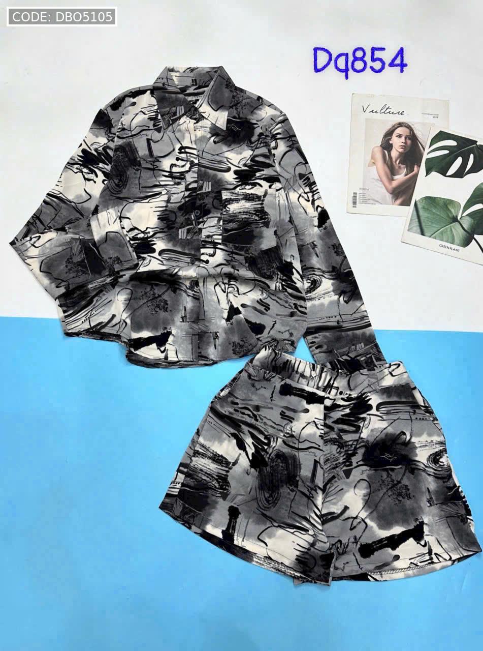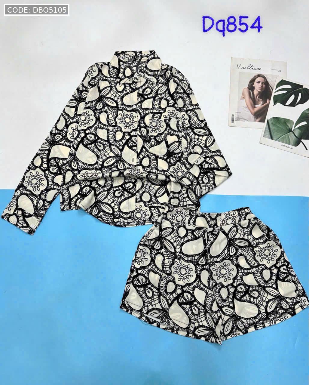 Bỏ sỉ đồ bộ mango áo sơ mi tay dài quần đùi nhiều họa tiết
