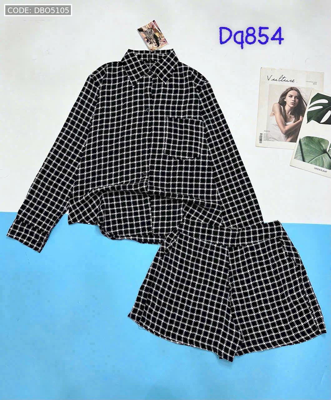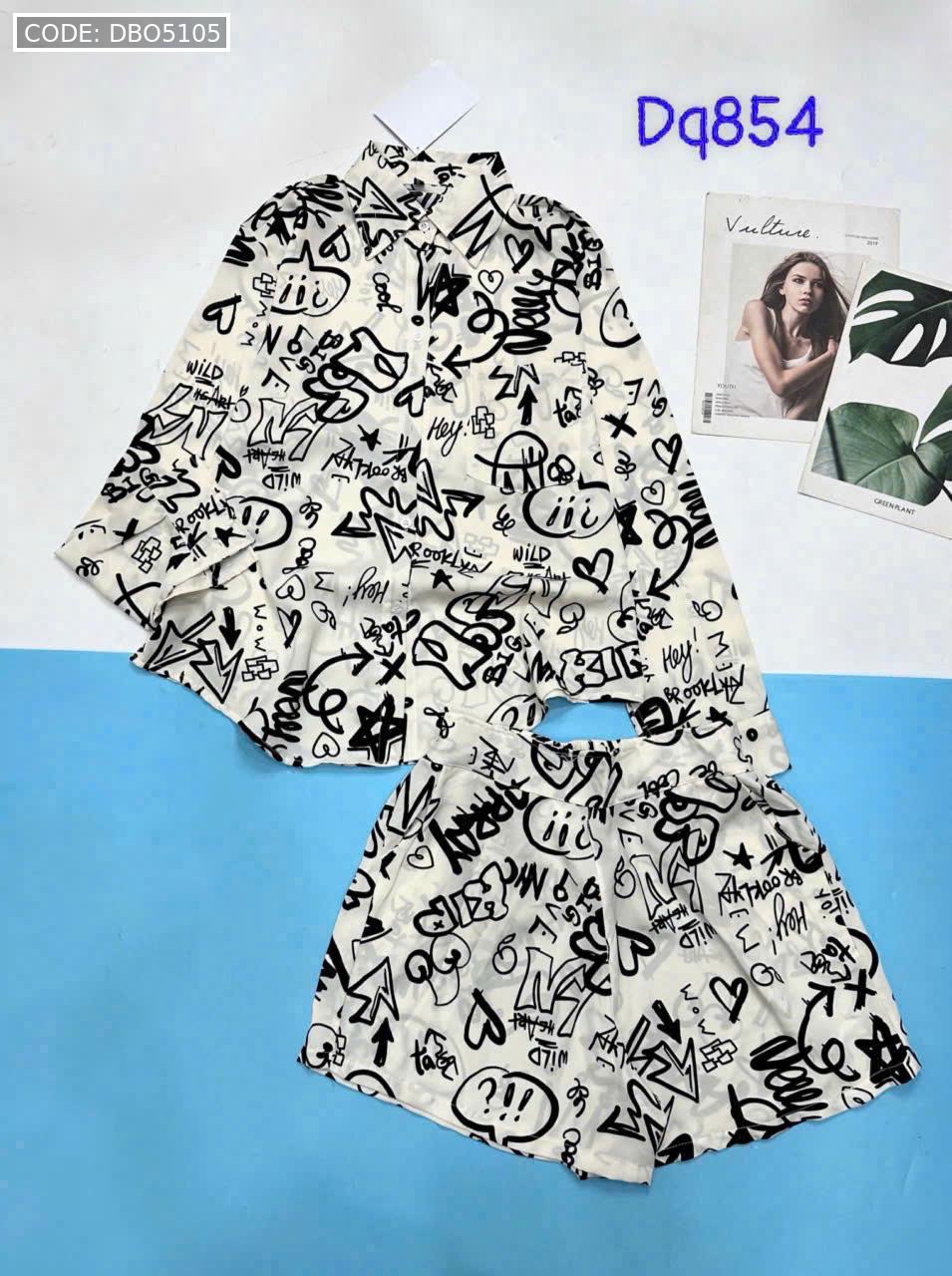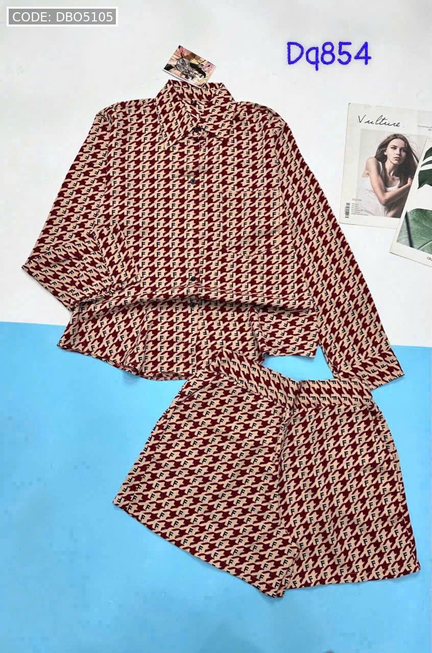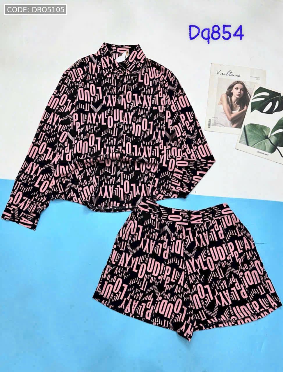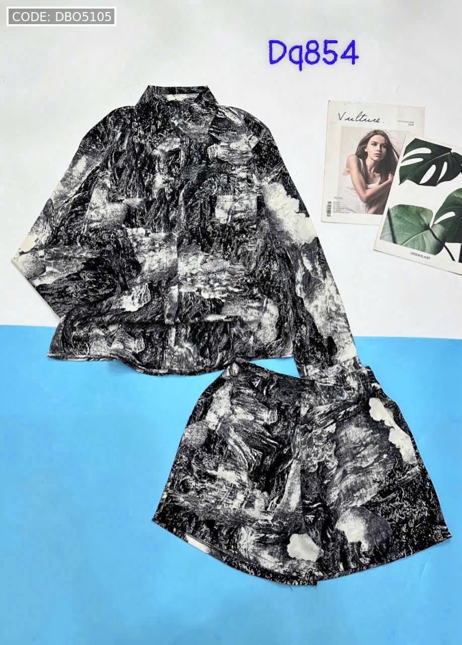 Bỏ sỉ đồ bộ mango áo sơ mi tay dài quần đùi nhiều họa tiết