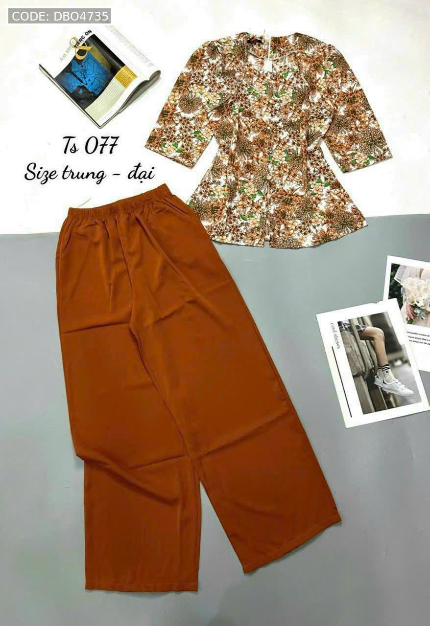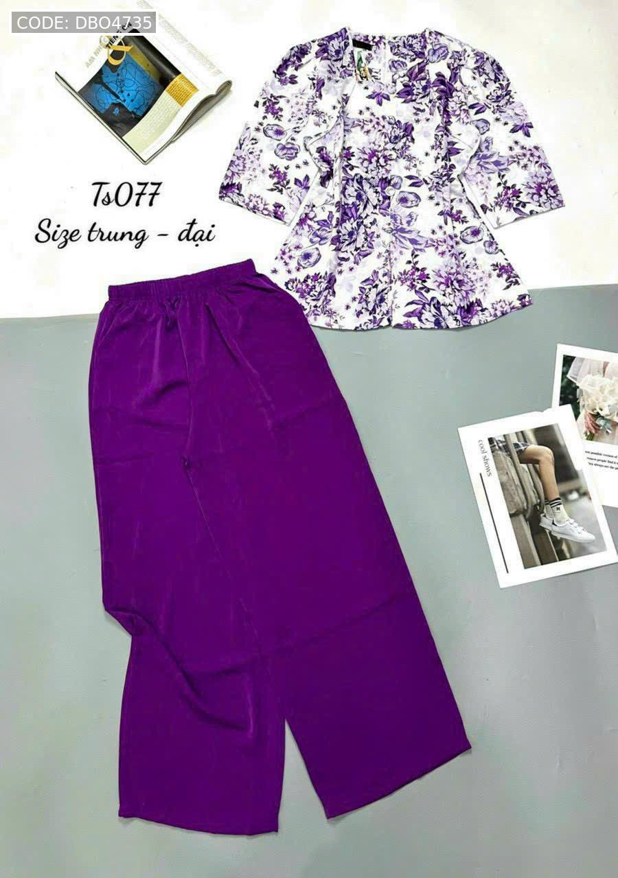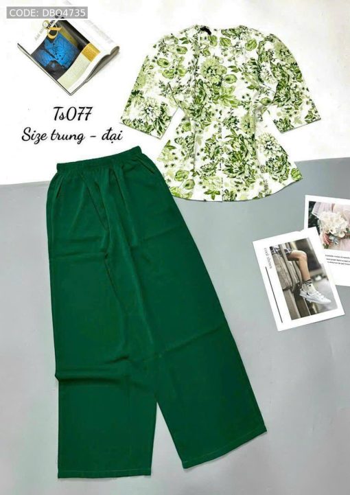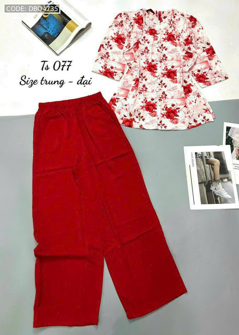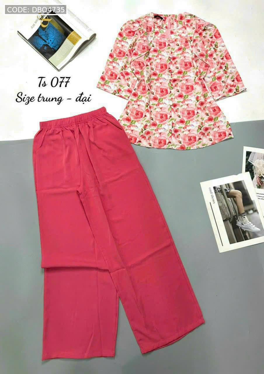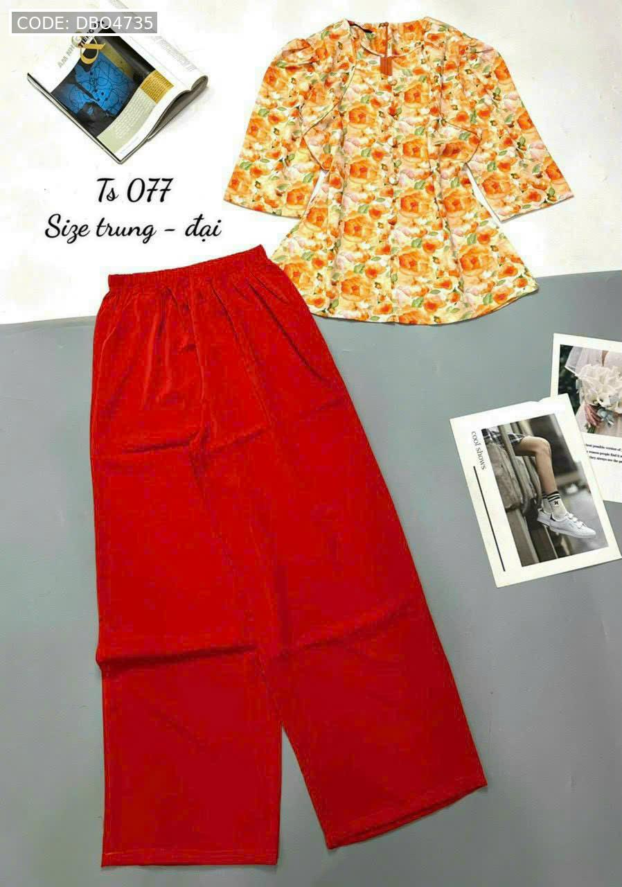 Bỏ sỉ đồ bộ mango quần dài trơn áo tay dài có nút in có 2 size