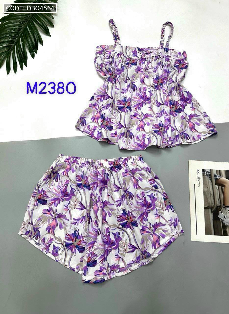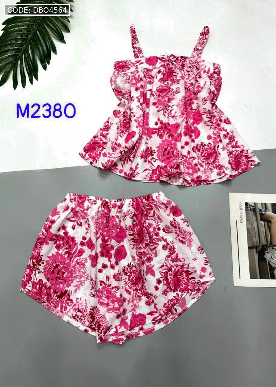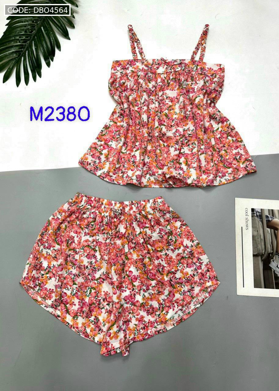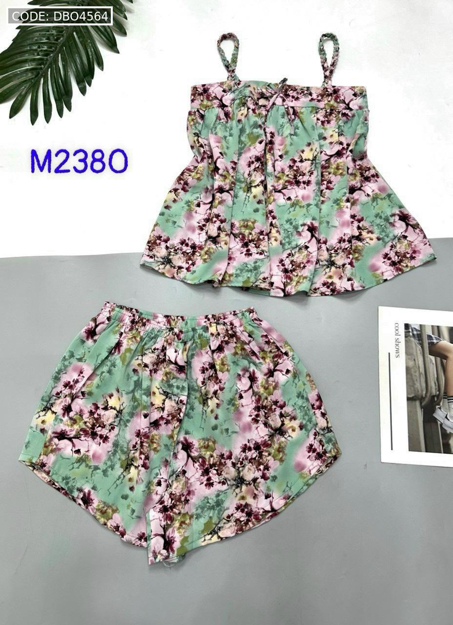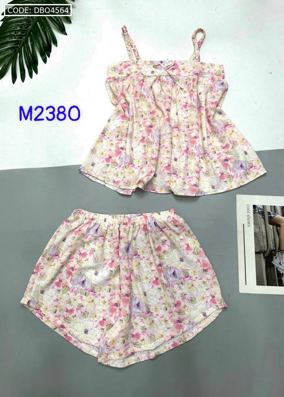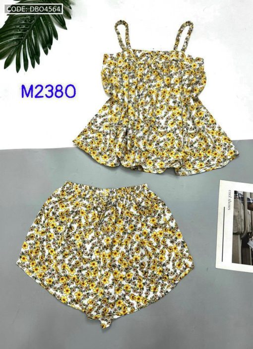 Bỏ sỉ đồ bộ mango quần đùi áo hai dây có nơ thắt nhỏ hoạ tiết hoa
