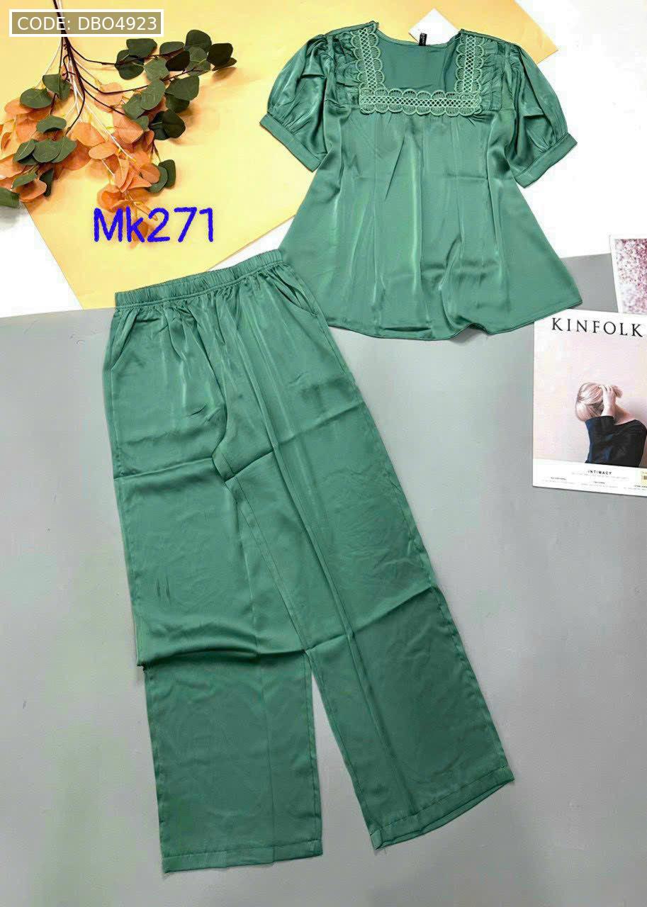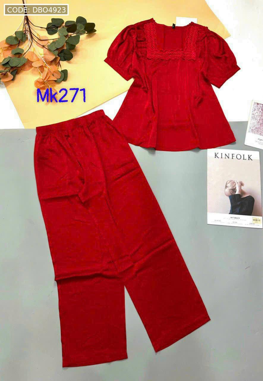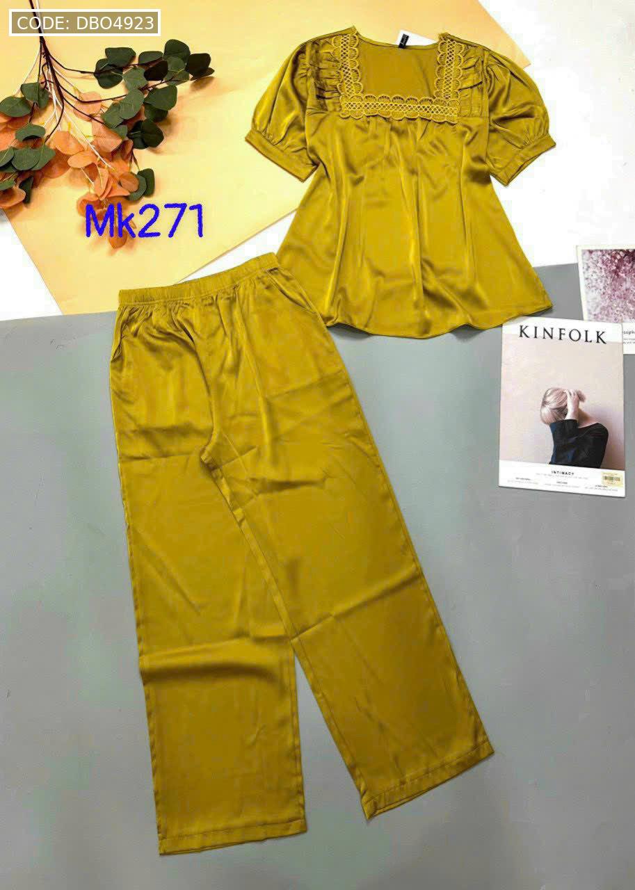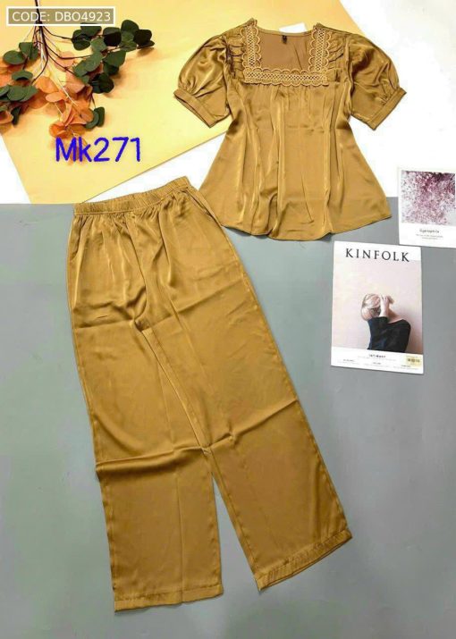 Bỏ sỉ đồ bộ pijama latin trơn quần áo tay ngắn cổ vuông phối ren